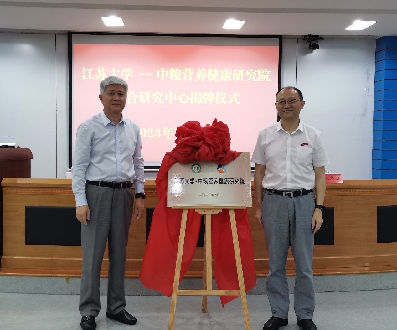 近日,江南平台客服—中粮营养健康研究院联合研究中心在我校揭牌。中粮营养健康研究院院长郝小明,江南平台客服副校长张济建、邹小波出席仪式。