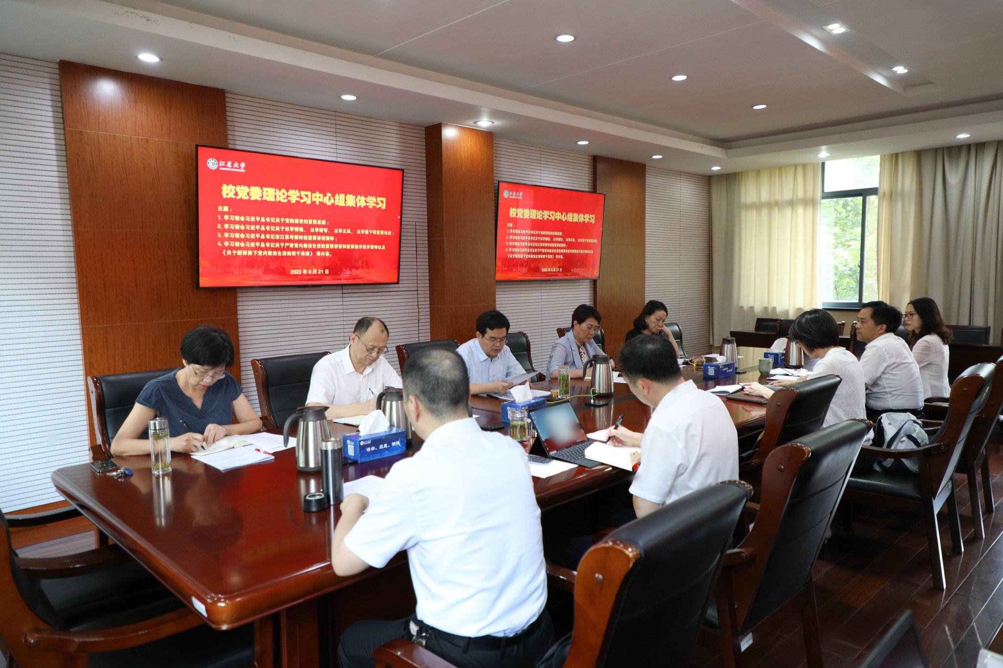 学习会上,李洪波以“第一议题”领学了8月15日《求是》杂志发表的习近平总书记重要文章《中国式现代化是强国建设、民族复兴的康庄大道》;校党委副书记张济建领学了习近平总书记关于党的建设的重要思想,习近平总书记关于以学铸魂、以学增智、以学正风、以学促干等重要论述,习近平总书记在江苏考察时的重要讲话精神;校纪委书记蒋彩霞领学了习近平总书记关于严肃党内政治生活的重要讲话和重要指示批示精神以及《关于新形势下党内政治生活的若干准则》部分内容。