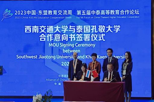 在联盟成员高校合作签约仪式环节,西南交通大学与泰国孔敬大学签署合作意向书,两校在人才培养、平台建设等方面的国际合作又迈上新台阶。