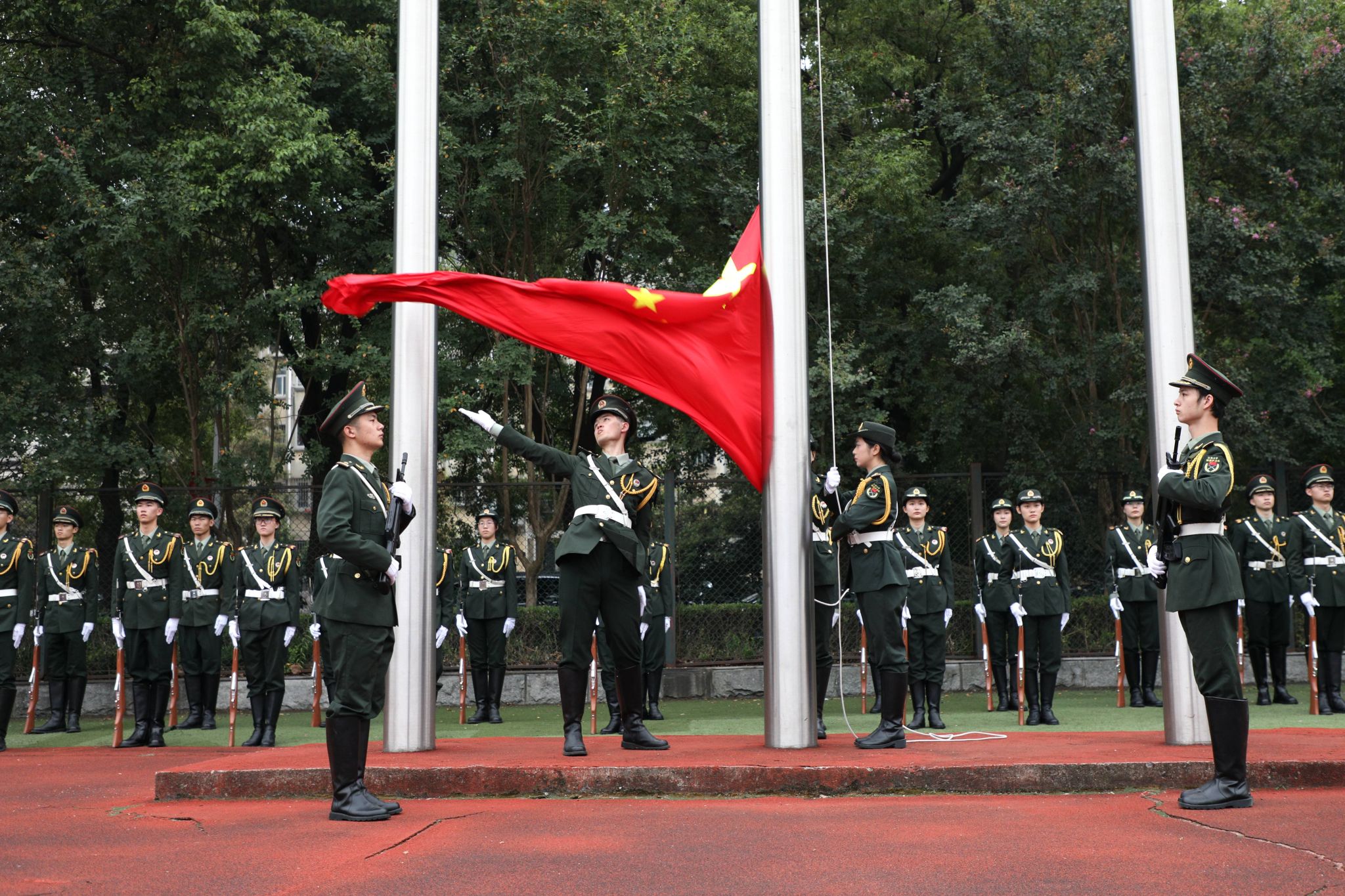 9月4日,江南平台客服迎来2023-2024学年秋季学期开学第一天。早上6点40分,新学期升国旗仪式在东山操场举行,开展爱国主义教育的同时,进一步激励师生以更加饱满的状态投入新学期。