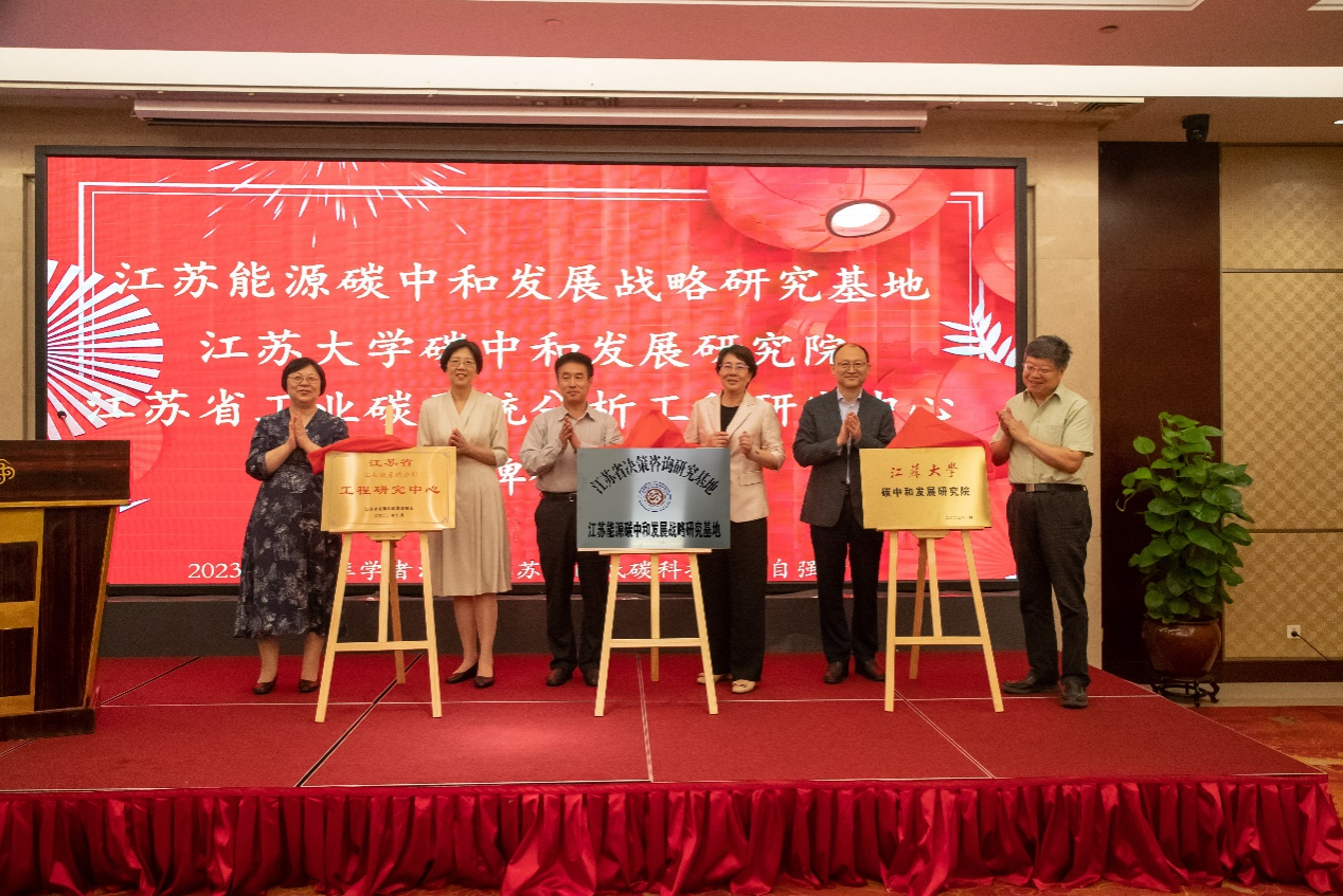 刘西忠、邢卫红为江苏能源碳中和发展战略研究基地揭牌;汪寿阳、张济建为江南平台客服碳中和发展研究院揭牌;范英、李红为江苏省工业碳系统分析工程研究中心揭牌,并为学术委员会主任汪寿阳颁发聘书。开幕式由李红主持。