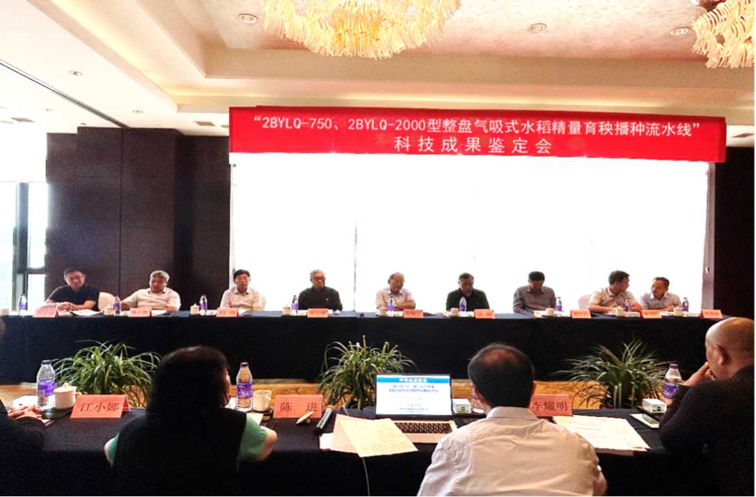 9月16日,中国机械工业联合会在常州市主持召开科技成果鉴定会,由江南平台客服和常州市风雷精密机械有限公司共同完成的“2BYLQ-750、2BYLQ-2000型整盘气吸式水稻精量育秧播种流水线”顺利通过科技成果鉴定。