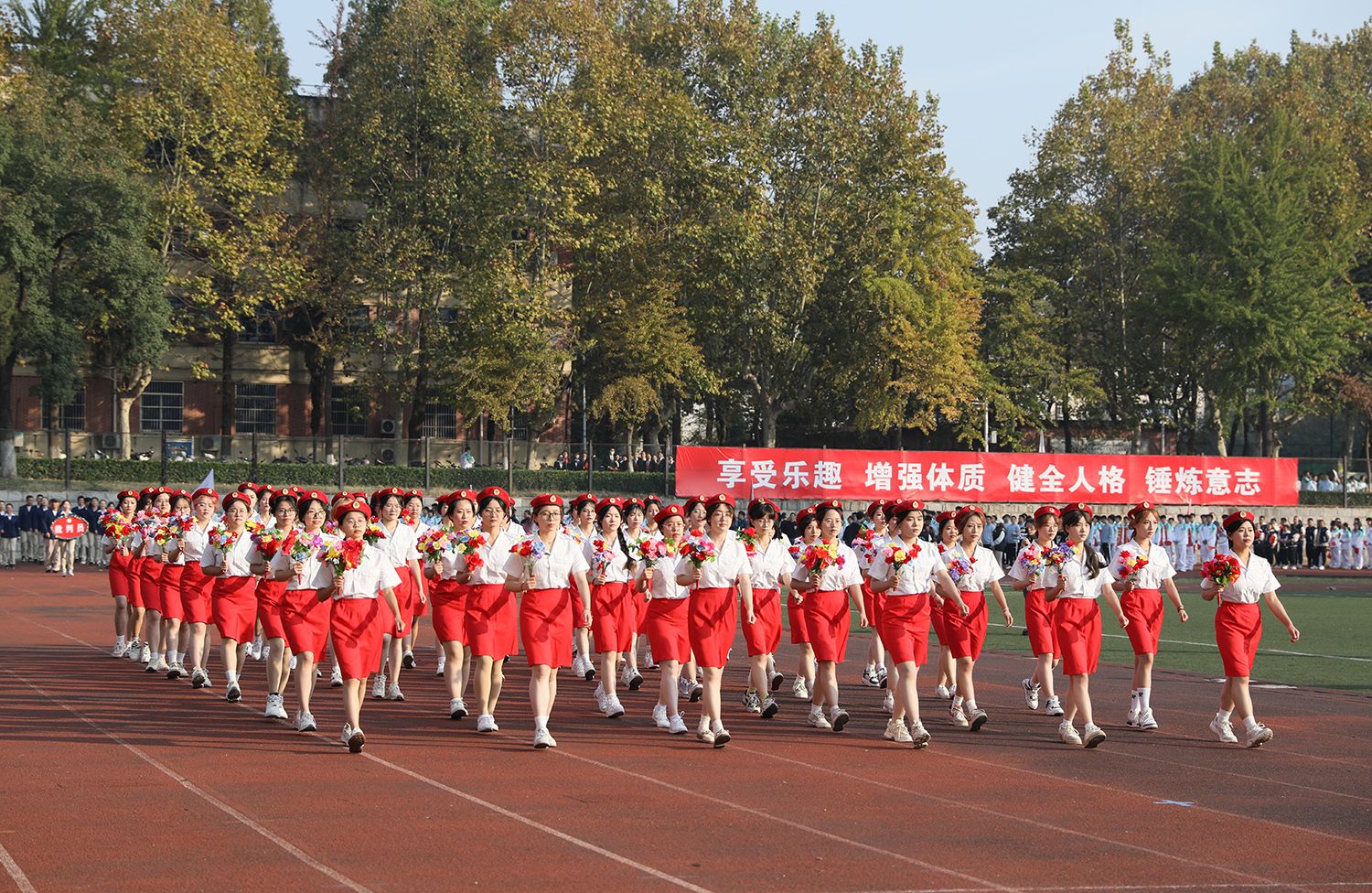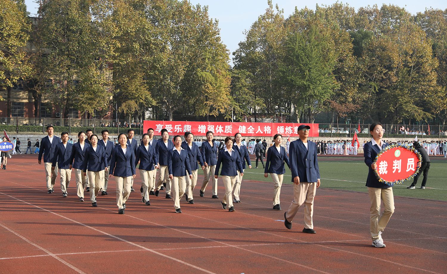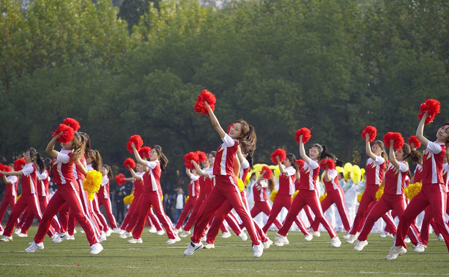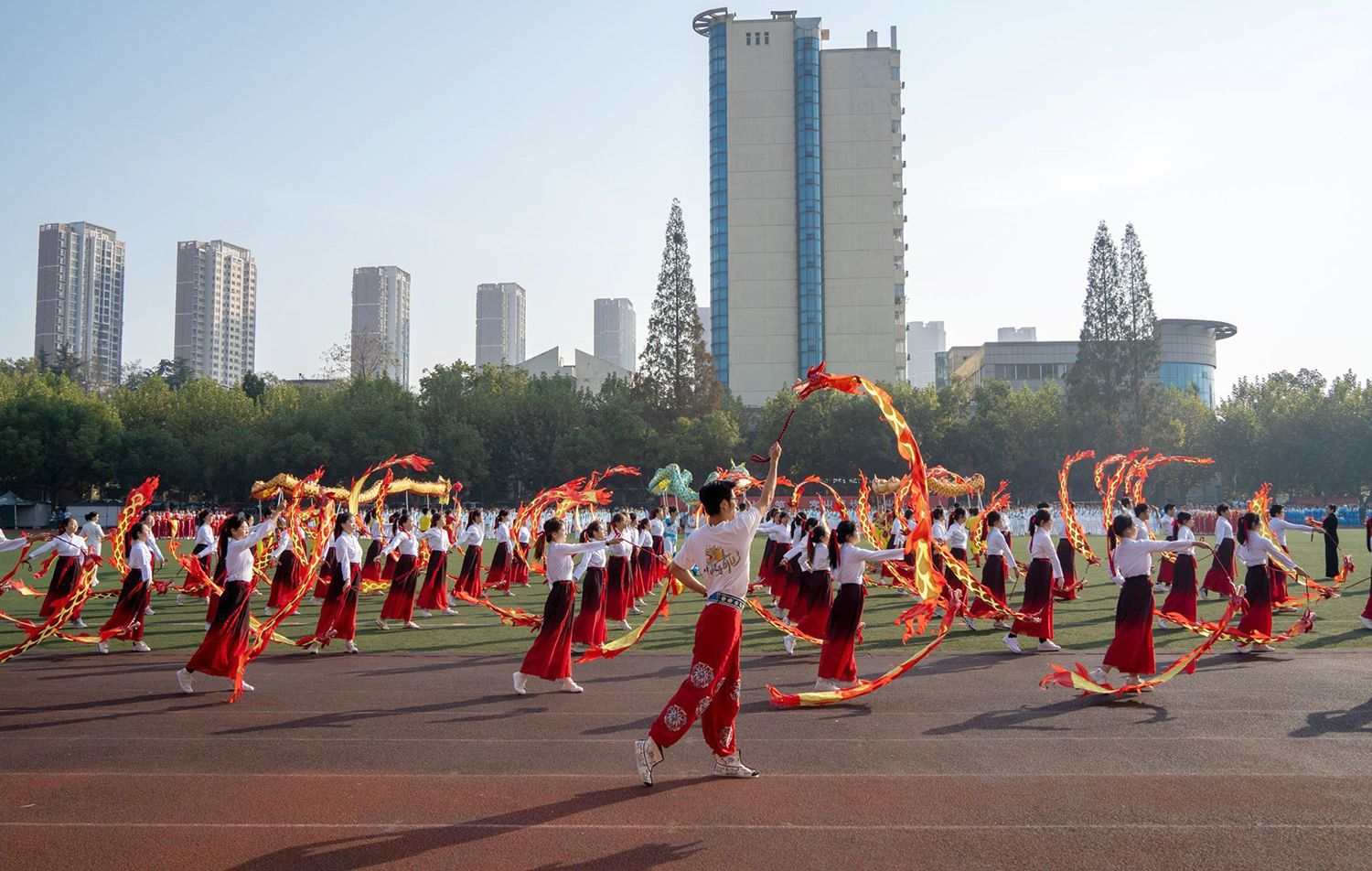 张济建宣布江南平台客服第二十二届运动会开幕。开幕式上,学生进行了舞龙舞狮、排舞表演,教职工进行了太极扇等表演。