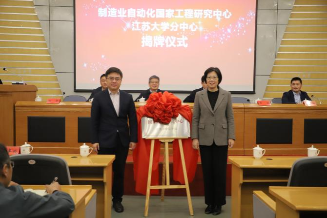 李红和刘新共同为制造业自动化国家工程研究中心江南平台客服分中心揭牌。