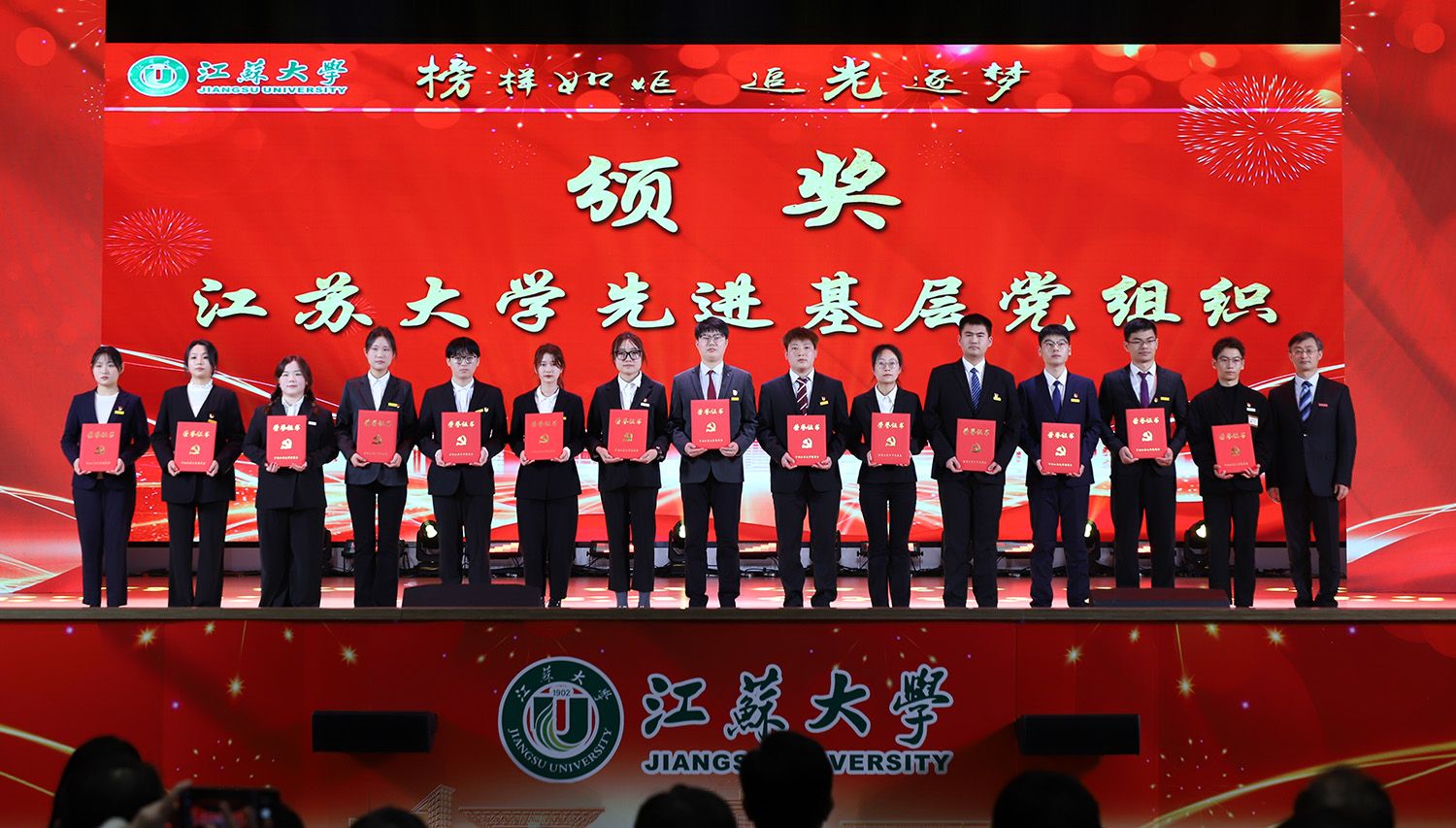 校关工委常务副主任柴顺根、党委办公室主任施进华为2023年度校先进基层党组织代表颁奖。