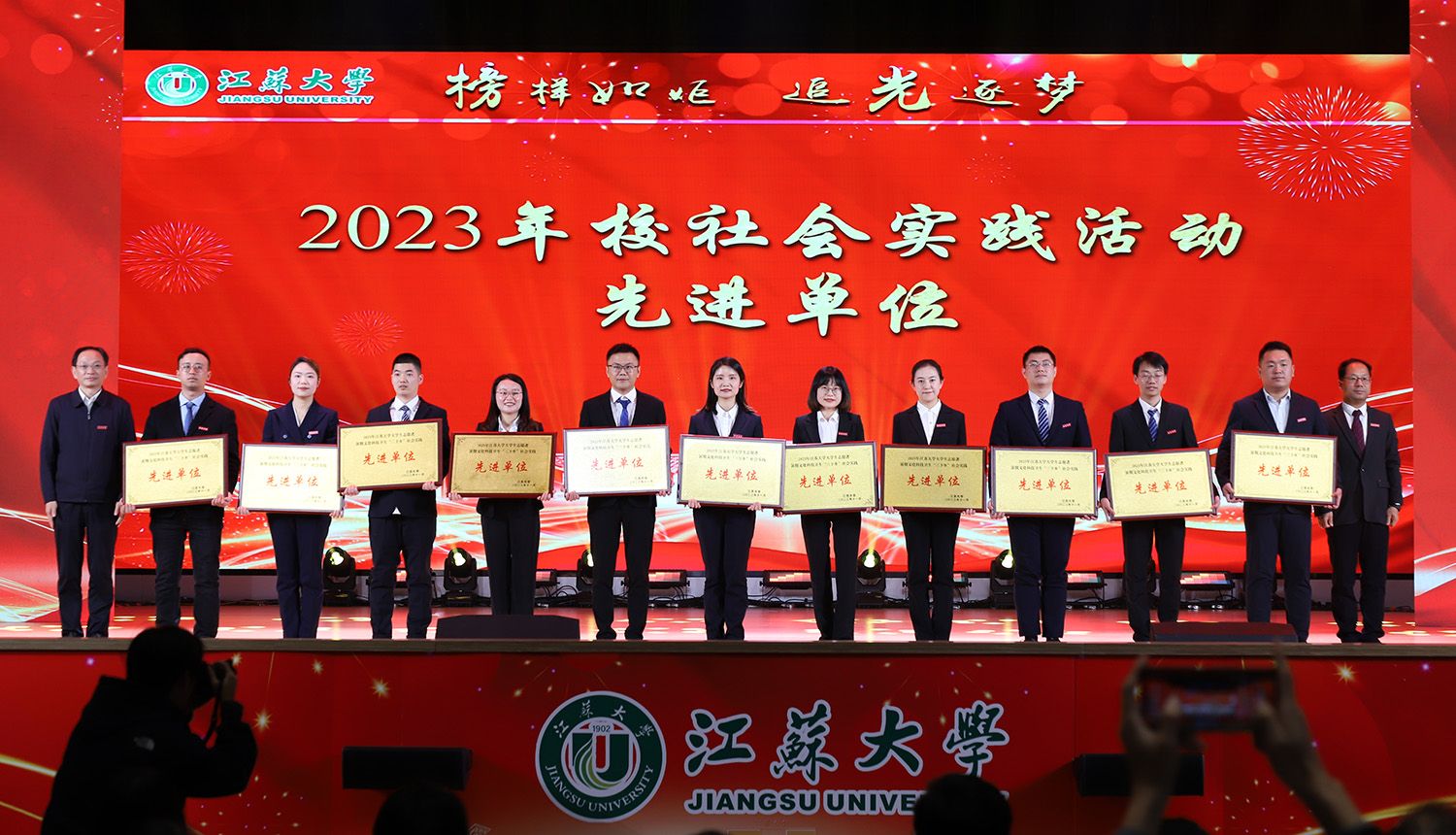 学生工作处处长任泽中、校工会常务副主席王善民为2023年校社会实践活动先进单位颁奖。