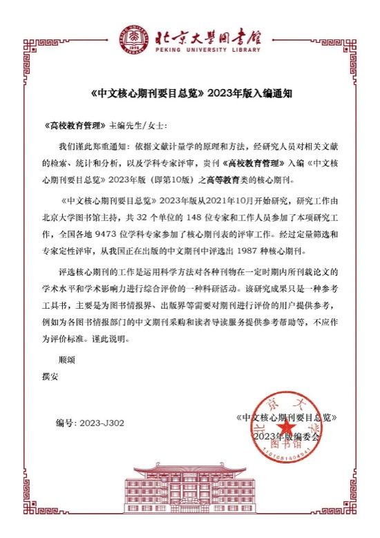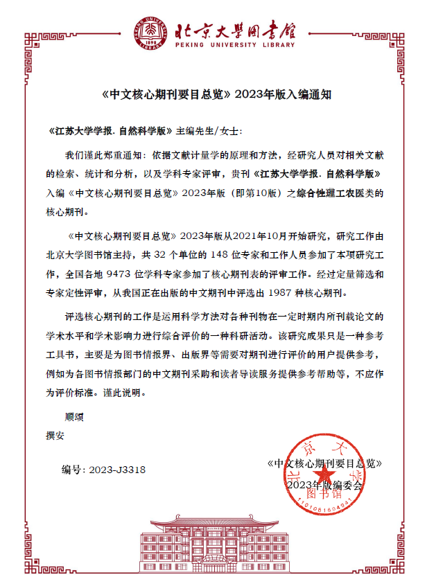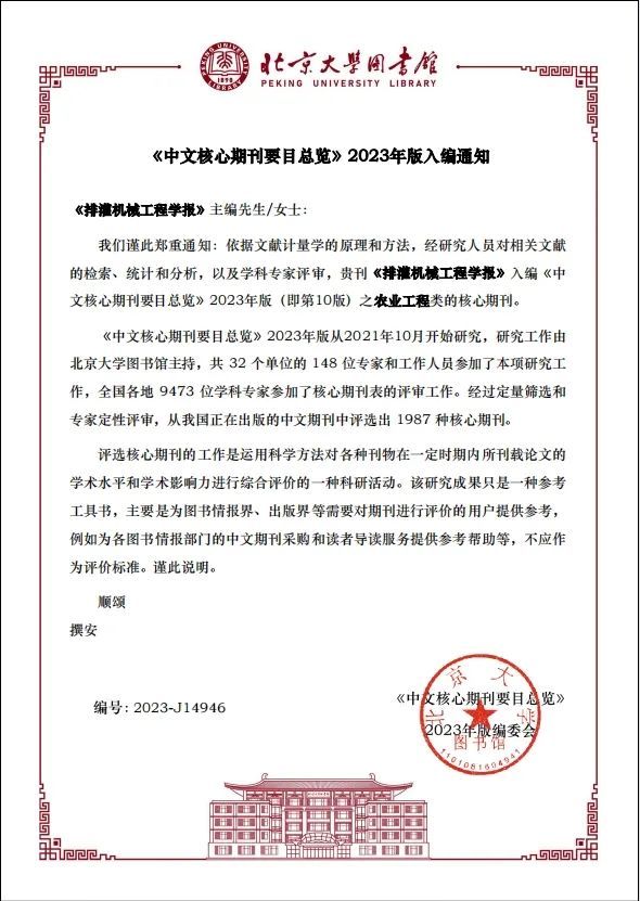 近日,在北京大学图书馆《中文核心期刊要目总览》2023年版(第10版)遴选中,我校主办的《江南平台客服学报(自然科学版)》第8次入选,入编综合性理工农医类核心期刊;《排灌机械工程学报》第7次入选,入编农业工程类核心期刊;《高校教育管理》第4次入选,入编高等教育类核心期刊。