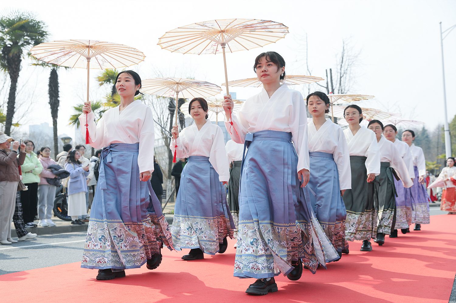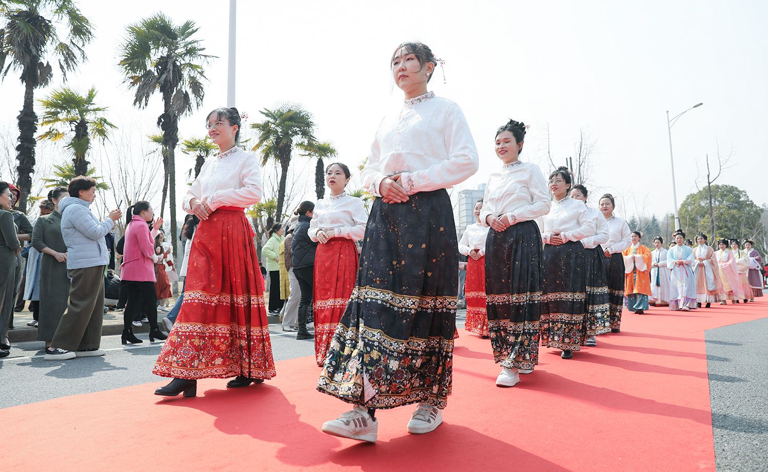 早春江大,处处是生机勃勃的景象。3月8日,是第114个国际劳动妇女节,学校在梅园举办“美丽邂逅,梦想绽放”庆祝“三八”国际妇女节活动暨首届梅樱节开幕式。由女教工、女大学生、女企业家组成的33支队伍共聚梅园,借满园春色,用“红毯秀”的形式展示女性风采,庆祝自己的节日。