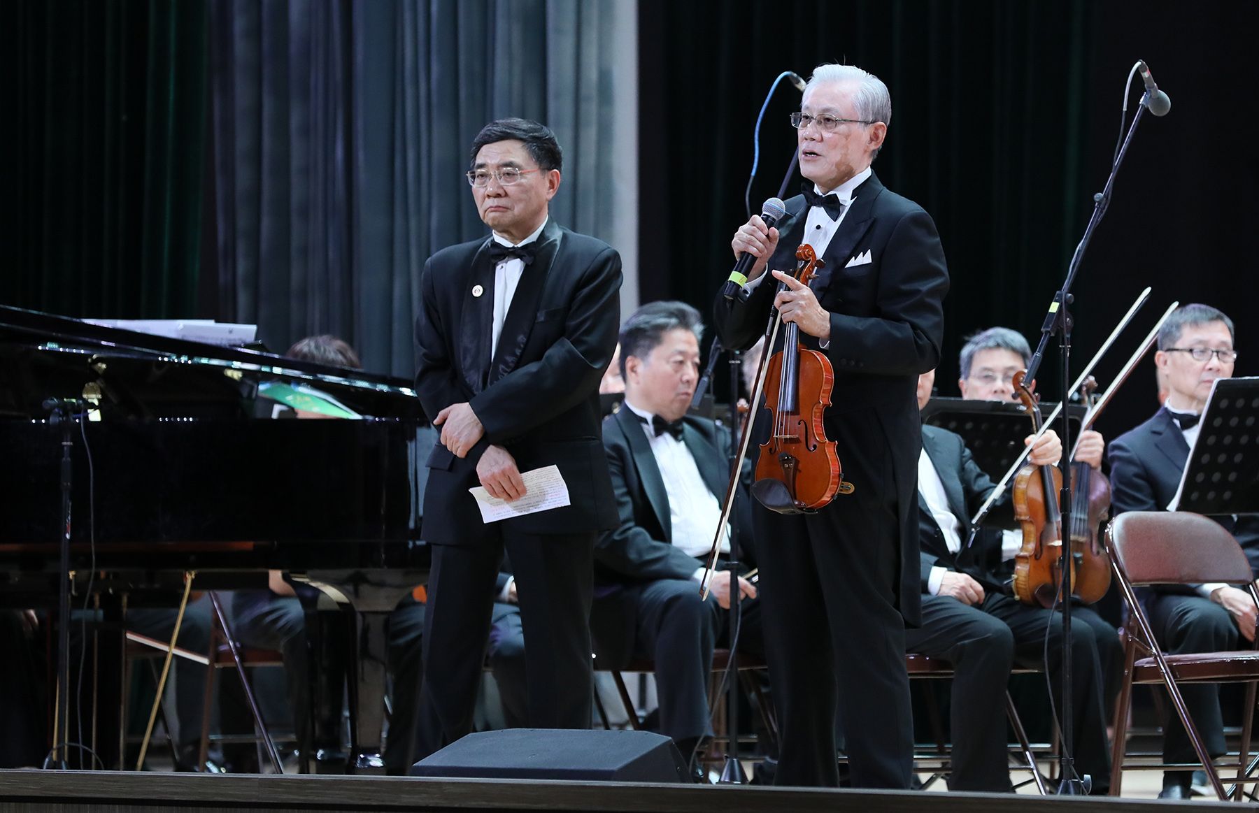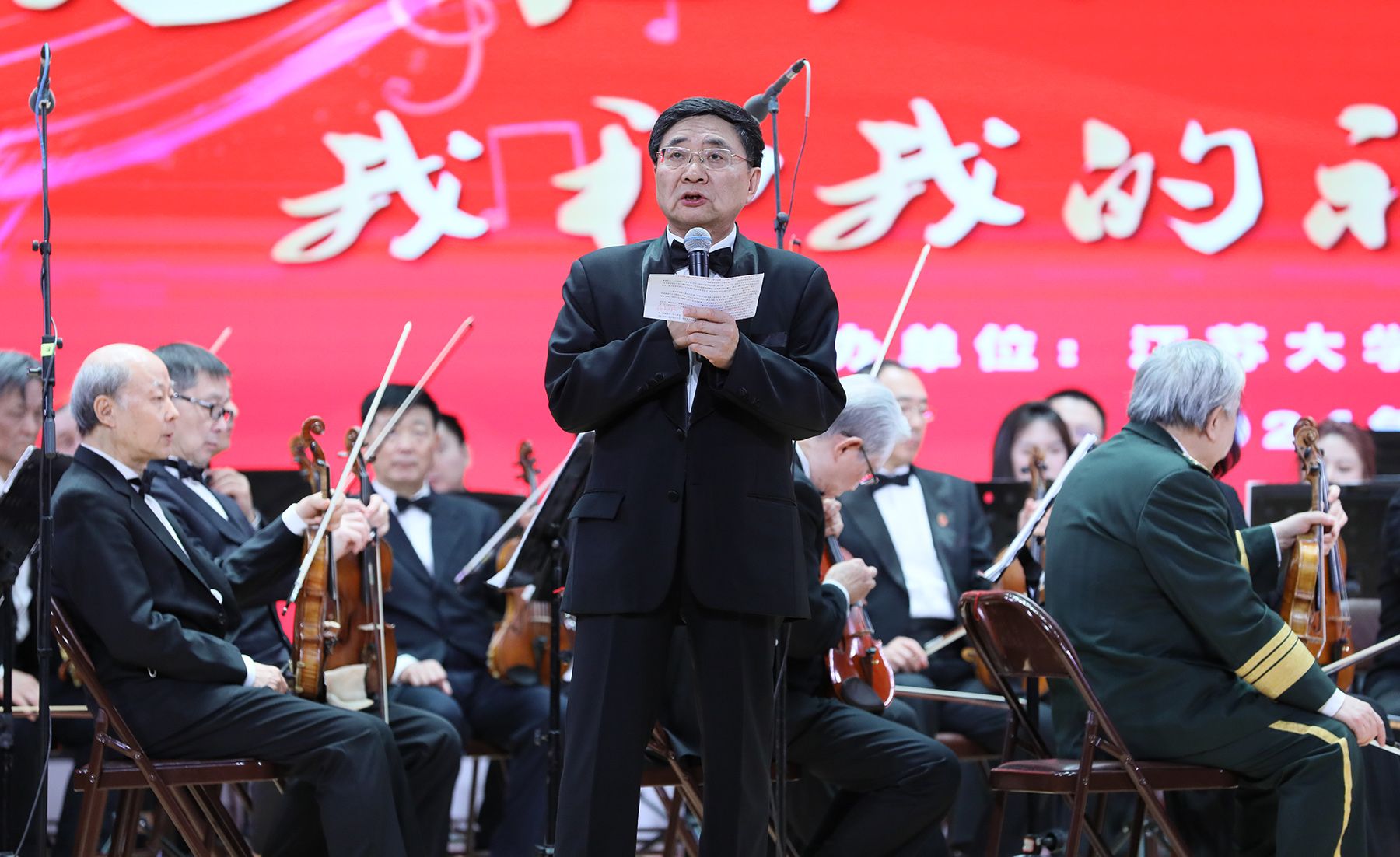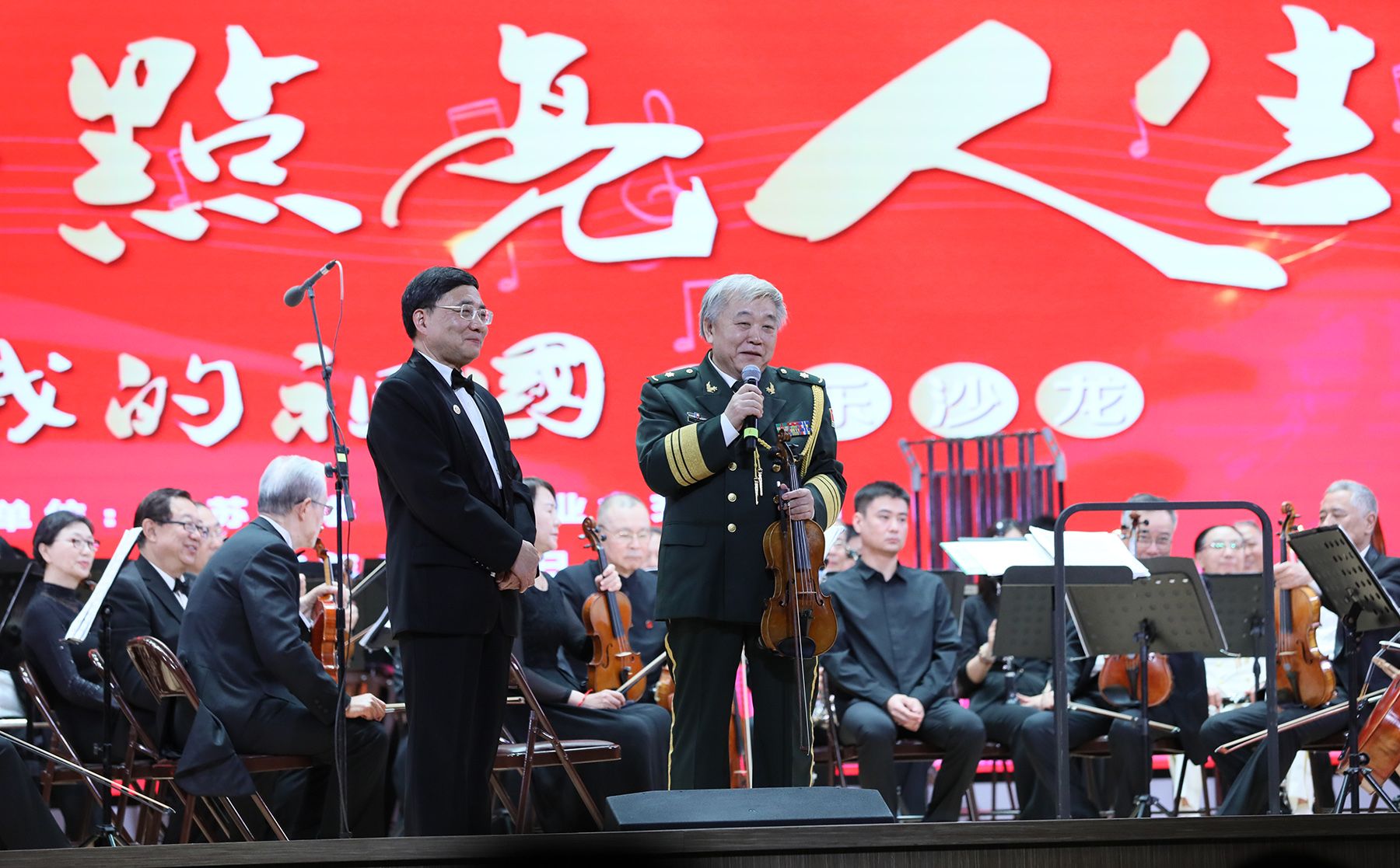 本场音乐沙龙由中国交响乐团国家一级指挥、中国音乐学院指挥系教授王琳琳担任指挥,301医院消化内科原主任医师梁浩教授任首席,我校杰出校友、乐团第二小提琴声部首席、我国著名力学与土木工程专家、上海大学原副校长叶志明教授任串场主持。