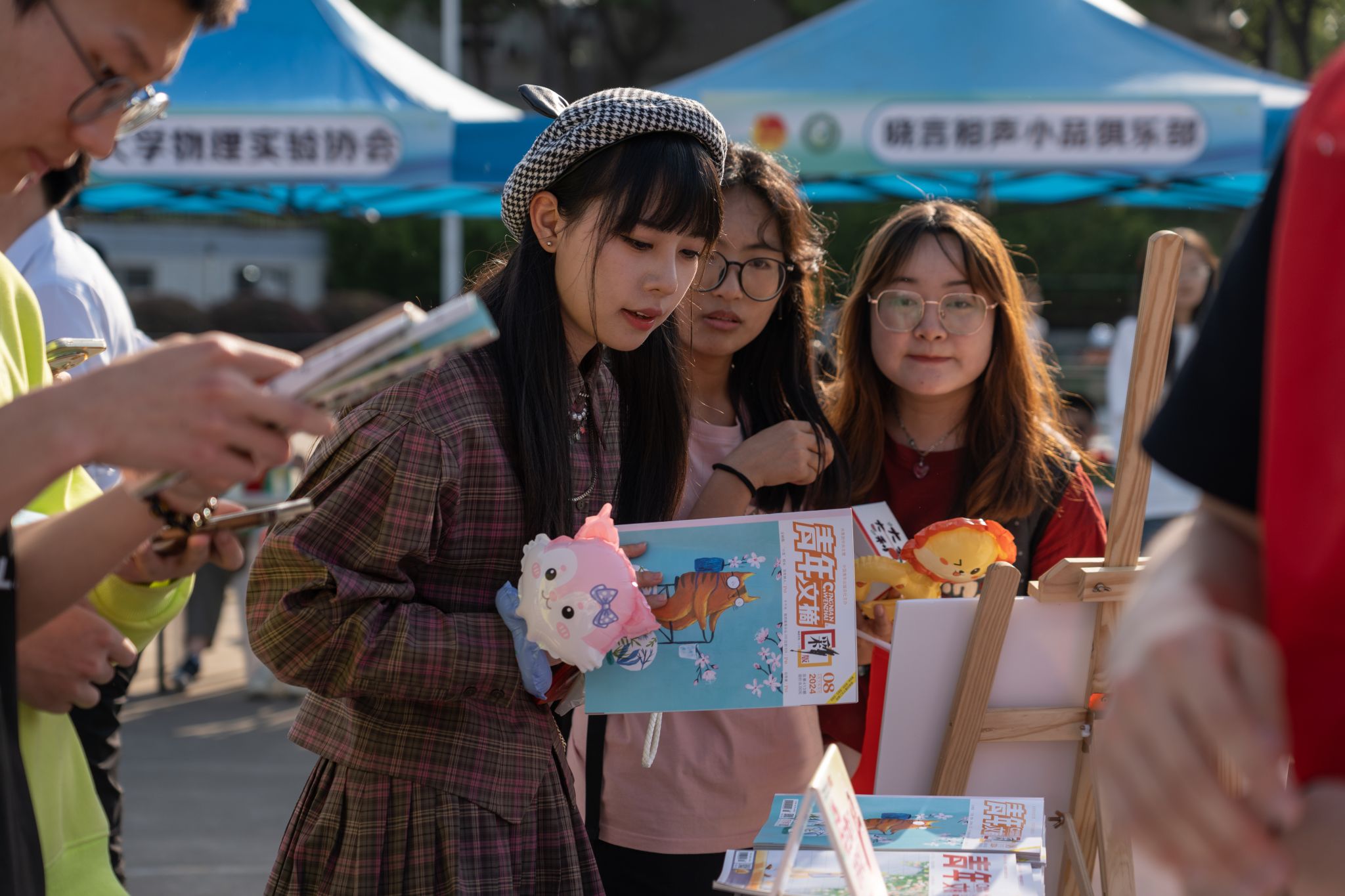学生社团巡礼环节,国旗护卫队、舞龙舞狮社、515街舞协会、晓言相声小品俱乐部、JSU原创音乐社、JSD曳步舞、流行音乐社、丝竹苑等28个学生社团参与布展。