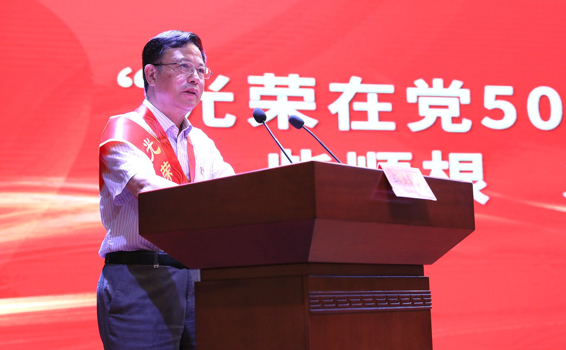 蒋彩霞在主持活动时指出,颁发“光荣在党50年”纪念章并开展党纪学习教育专题党课,向老党员传递党的关心关爱,激励广大师生党员以昂扬姿态和饱满热情牢记初心使命、奋力担当作为,既是对老一辈共产党员的集体致敬,也是对全校师生党员深刻的党性教育。
