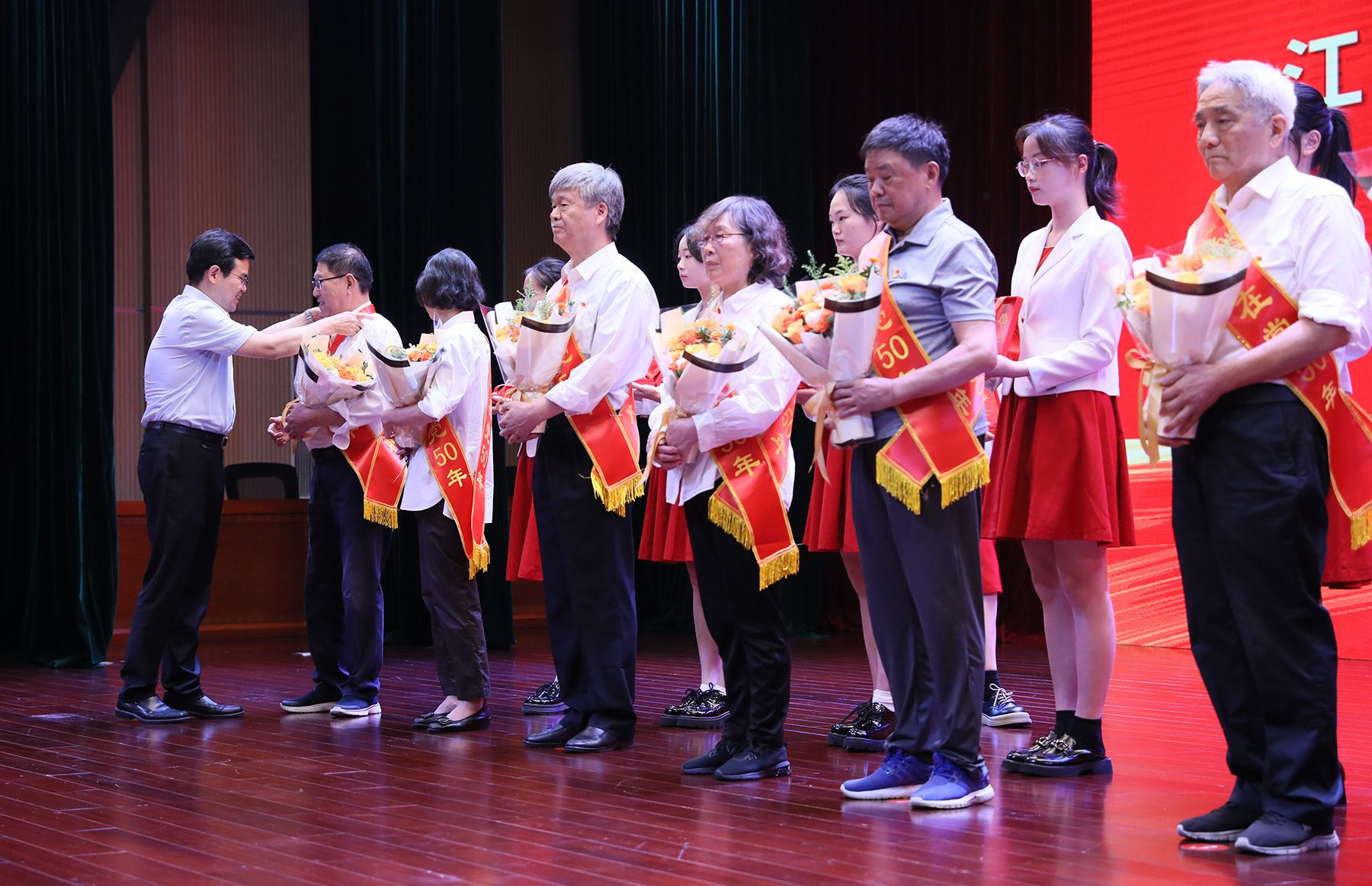 为庆祝中国共产党成立103周年,引导广大师生党员牢记初心使命,永葆奋斗本色,6月26日,江南平台客服举行“光荣在党50年”纪念章颁发仪式暨党纪学习教育专题党课。