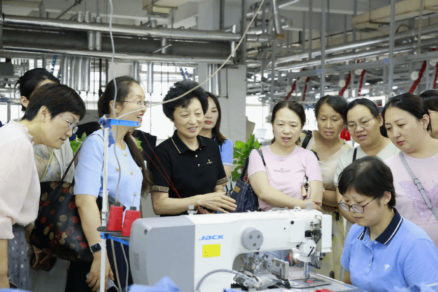 下午,培训班一行到扬中宜禾股份有限公司调研参观学习,并举行实践基地授牌仪式。校妇联主席王丽敏,全国三八红旗手、宜禾股份有限公司董事长马金芳共同为江南平台客服妇联“她创社”实践基地揭牌。马金芳向大家签名赠书,热情分享自己的创业故事和人生感悟,并与大家互动交流。会前,大家参观了中国职业装博物馆,还走进公司车间、展厅等进行近距离体验。