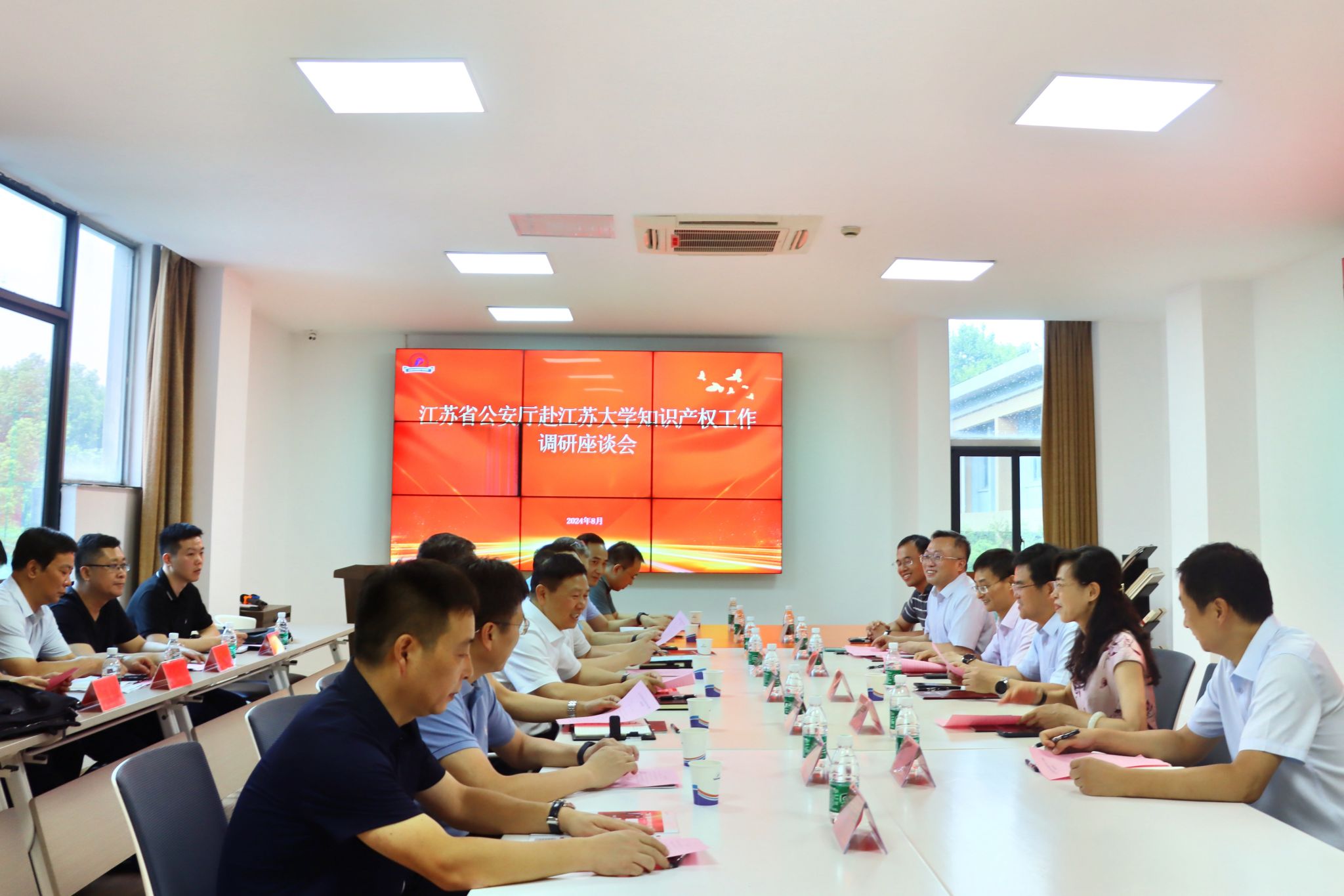 8月21日,江苏省公安厅党委委员、副厅长陈红淦一行到我校调研知识产权工作。校党委书记李洪波,镇江市副市长、市公安局局长袁修来等出席座谈会。知识产权学院院长赵观兵主持会议。