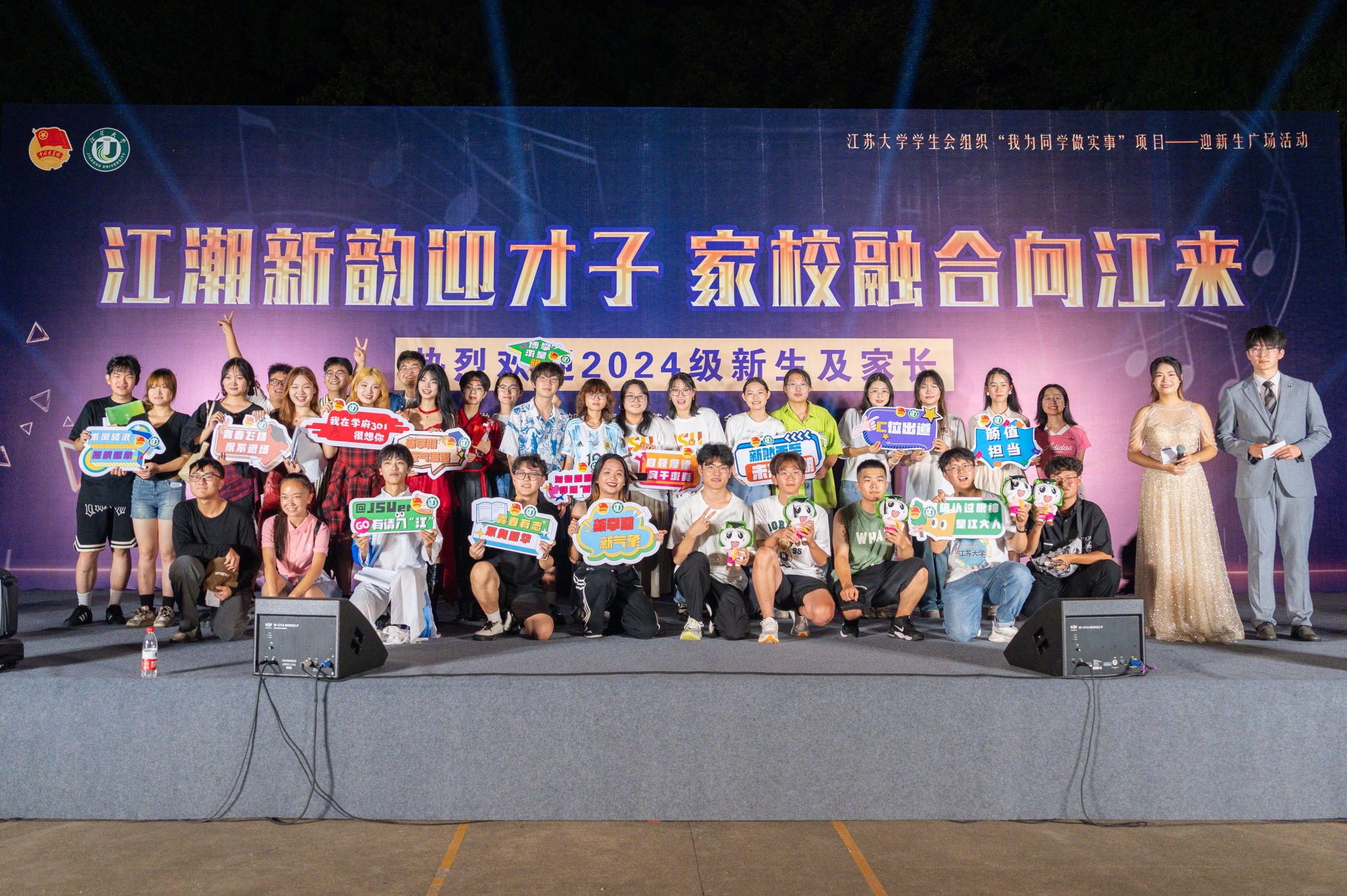 此外,学校还举办入学讲座、家长课堂及一系列新颖的迎新活动,新生及家长积极参与其中,共同体验充满活力的喊麦互动,凝聚家庭与学校的教育合力。志愿者们精神饱满,冒着高温,各司其职,积极开展新生接站、引导讲解、搬运行李等服务工作,成为校园一道亮丽的风景线。学校在西山灯光篮球场开展了“江潮新韵迎才子,家校融合向未来——迎新生广场活动暨江大星期六达人秀”,学生组织现场为同学做实事,节目表演精彩纷呈,新生与家长共同参与表演,为迎新活动增添了别样的文化体验和氛围。