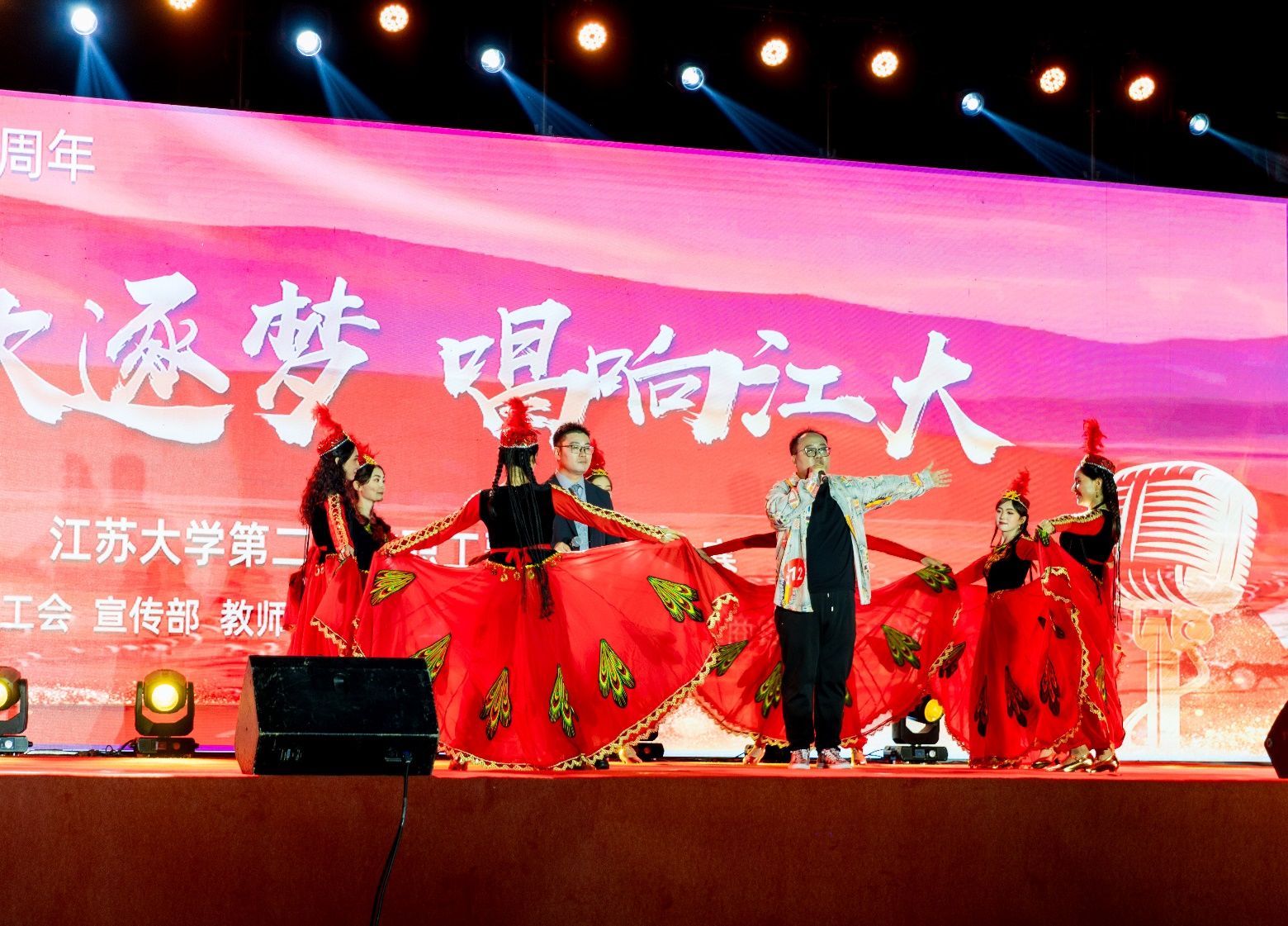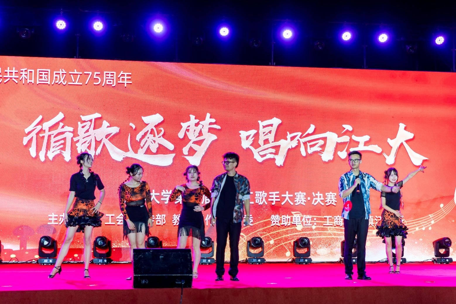演唱曲目,既有慷慨激昂的红歌,又有声声入耳的流行音乐和引人入胜的民族曲调,也不乏优秀的原创歌曲,引起了现场观众的热烈反响和强烈共鸣。同时,来自教职工拉丁舞俱乐部、大学生溪韵舞协、海外学院留学生、京江学院灵动舞协、江大附院旗袍社团的师生同台助演,进一步增强了演出的观赏性和吸引力。