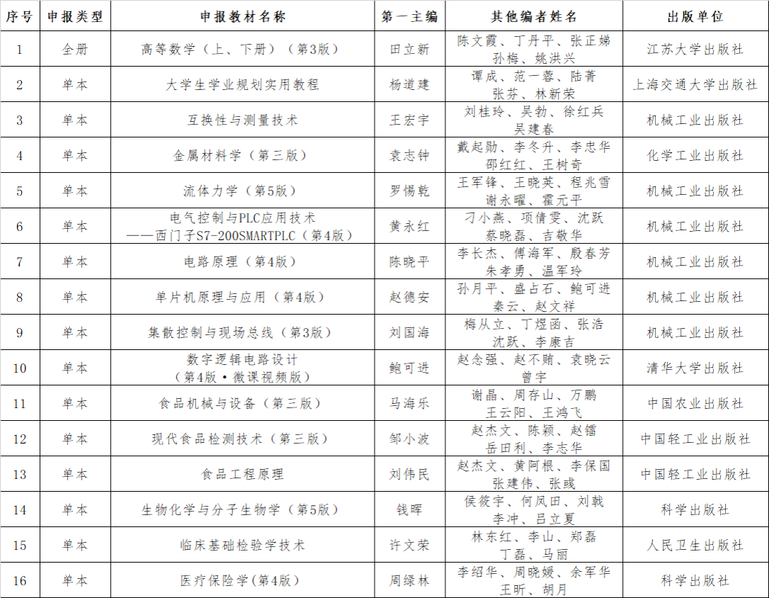 本次推荐遴选,江南平台客服共获得推荐16本教材。