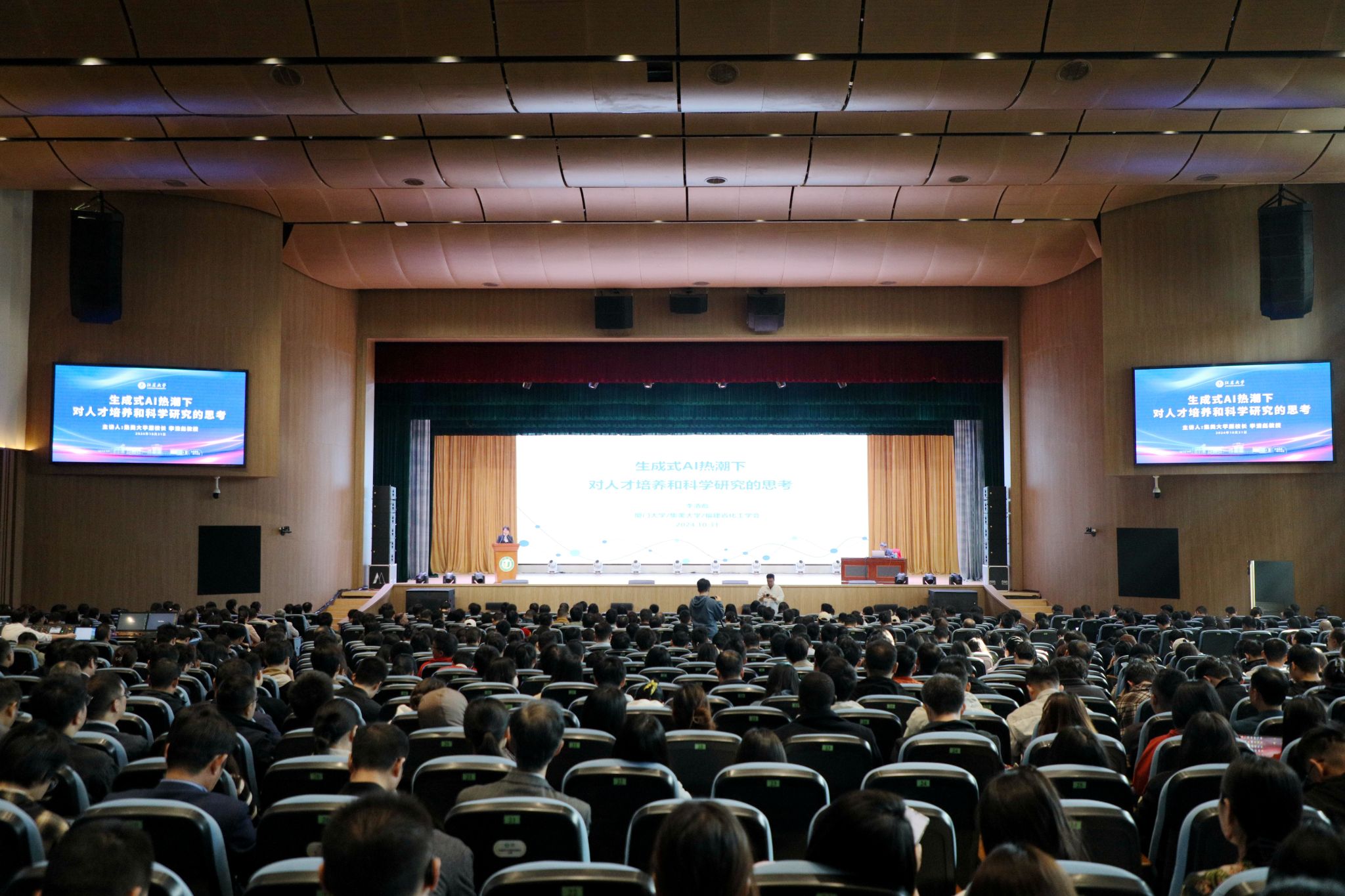 报告中,李清彪以ChatGPT人工智能技术为切入点,深入介绍了生成式AI技术的演进脉络、多元应用场景及其在教育行业中的实践现状。报告结合国内外高校调研数据、实际案例,使参会人员对生成式AI与高校人才培养、江南(中国)的关系有了更加全面深入的认识和思考。他指出,在生成式AI热潮下,人才培养和江南(中国)都需要与时俱进,教育工作者需要不断更新自己的知识体系,掌握最新的教育技术和方法,培养学生的批判性思维和创新能力,以适应新技术带来的挑战和机遇。