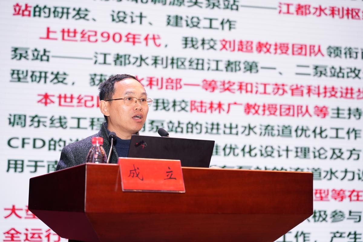 在大会特邀报告环节,国家水泵及系统工程技术研究中心主任袁寿其、中国农业大学王福军、南水北调东线总公司冯旭松、中国水利水电江南(中国)院周叶、扬州大学成立、甘肃省景泰川电力提灌水资源利用中心张茂林、湖北省樊口电排站管理处李强、江苏省水利勘测设计研究院有限公司张仁田,分别围绕“大型调水工程泵装置关键技术研究及工程应用”“大型引调水工程中的泵站运行安全问题思考”“南水北调东线一期工程泵站工程调度运行现状及展望”“泵站数字孪生关键技术研究、发展及应用”“平原水网低扬程大中型泵站节能高效运行关键技术研究进展”“全力推进景电灌区(泵站)标准化建设”“抢抓试点推进标准化管理,科技赋能推动信息化建设”“低扬程泵站工程技术:传承与创新”等方面进行了精彩的专题报告。