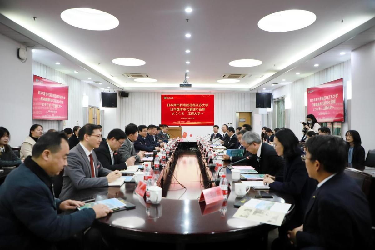 11月22日,在镇江市人民政府外事办公室陪同下,日本津市市长前叶泰幸、议长青山昇武率领的代表团一行来访江南平台客服,校党委书记李洪波在会议中心第二报告厅与代表团成员进行了友好会谈。校长办公室、国际合作与交流处、校友会与对外联络办公室、农业工程学院、汽车与交通工程学院、艺术学院、外国语学院、海外教育学院相关人员及外国语学院日语系学生代表参加会谈。