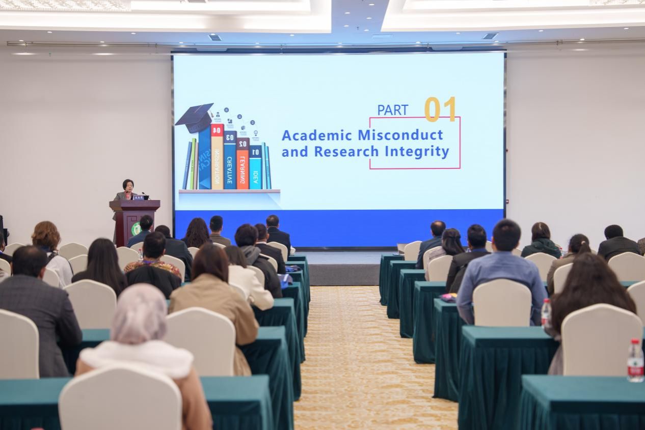 研讨会特邀四位专家作主旨报告。南京航空航天大学教授彭聪围绕来华留学生如何加强学术诚信和规范进行了深入探讨,系统阐述了诚信写作的核心价值与具体实践方法。南京理工大学教授陈翔就在中韩两国的求学和工作经历进行了深入分享,探讨了留学研究生如何应对文化适应与学术研究的双重挑战。东南大学教授浦正宁就国际研究生如何更好地适应和融入中国特色研究生培养体系进行了深入解读,结合中国作为全球第二大研究生培养国的优势,为在场留学生提供了切实可行的适应策略。江南平台客服教授张琪就科学写作中的关键技巧与常见陷阱进行了深入剖析,详细阐述了如何在竞争激烈的学术领域撰写高质量论文。