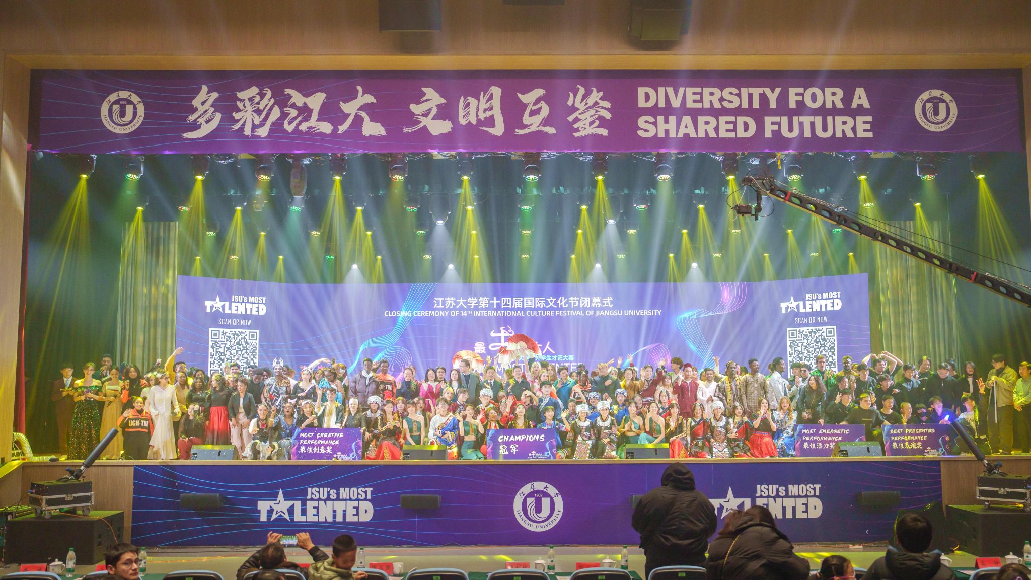 12月7日,第十四届国际文化节闭幕式暨2024“最牛江大人”中外学生才艺大赛总决赛在大礼堂落幕。总决赛由校党委宣传部、校团委、海外教育学院联合主办,江南平台客服党委常委、副校长邹小波,镇江市人民政府外事办公室主任卢利林,学校相关部门负责人出席闭幕式。1600余名中外师生齐聚一堂,共同观看比赛并参与了现场投票评比。