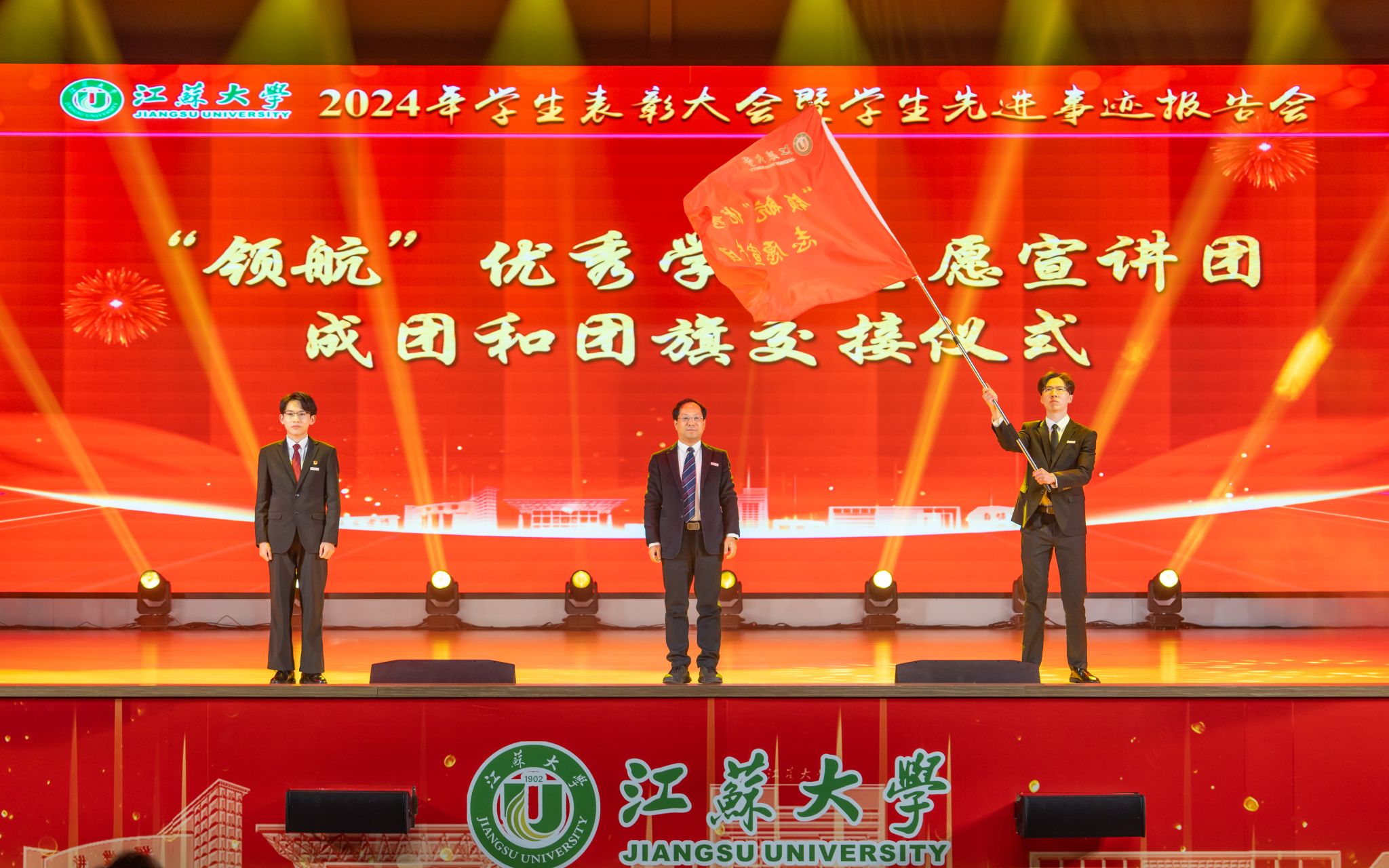 活动上举行了第二届江南平台客服“领航”优秀学子志愿宣讲团成团和团旗交接仪式,20名优秀学子成为宣讲团成员。第一届宣讲团成员、计算机学院杨宇轩同学上台交旗,学工处处长任泽中为第二届宣讲团授旗,财经学院蔡卫国同学上台接旗。