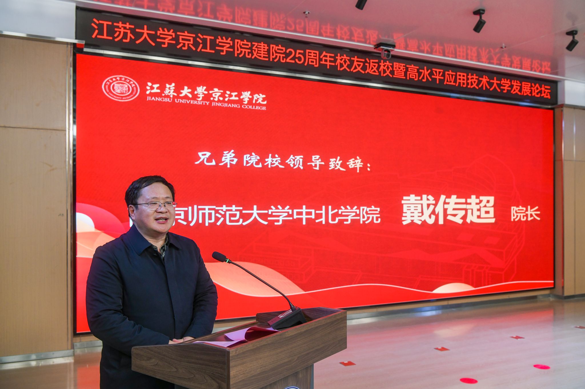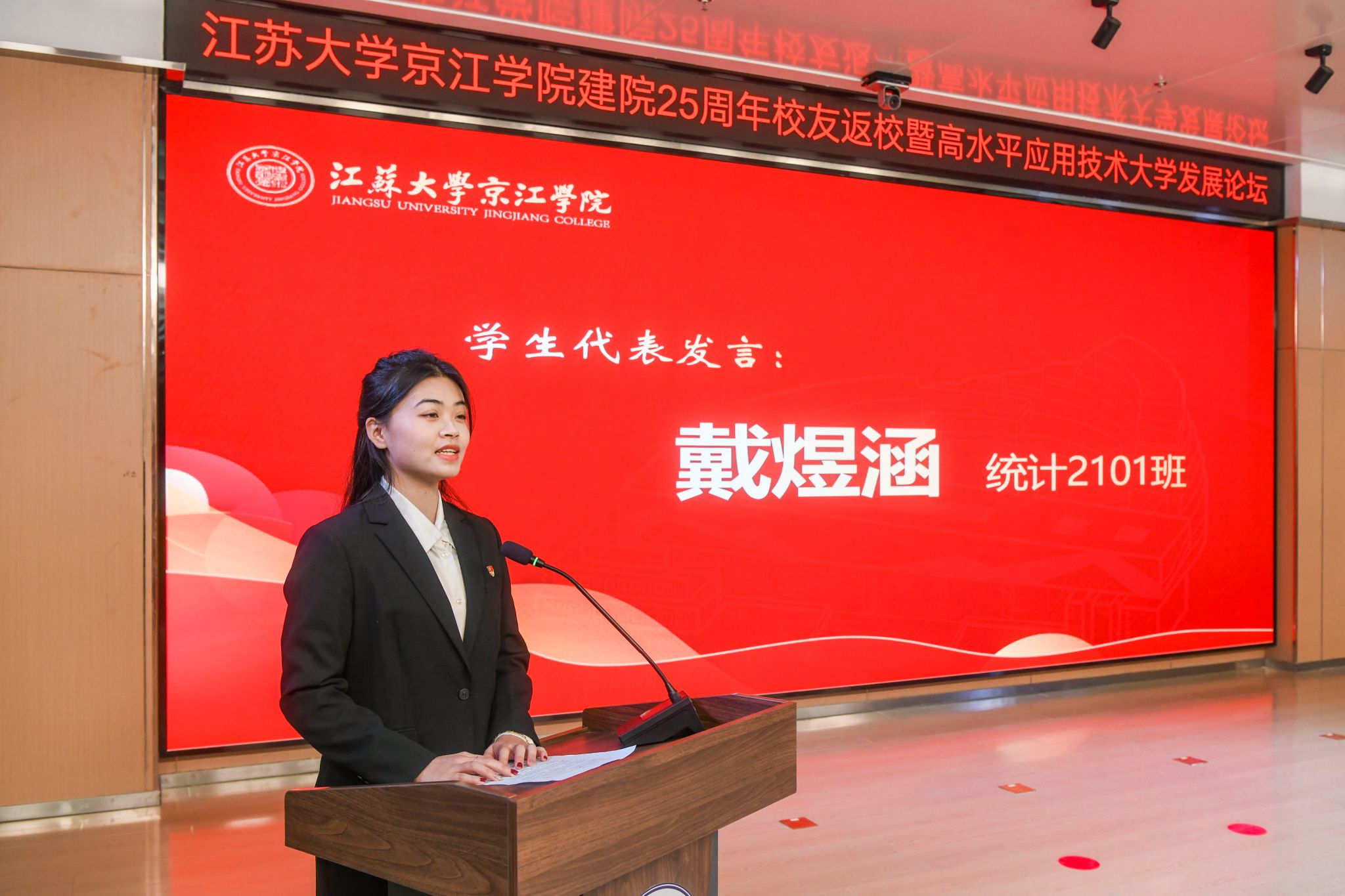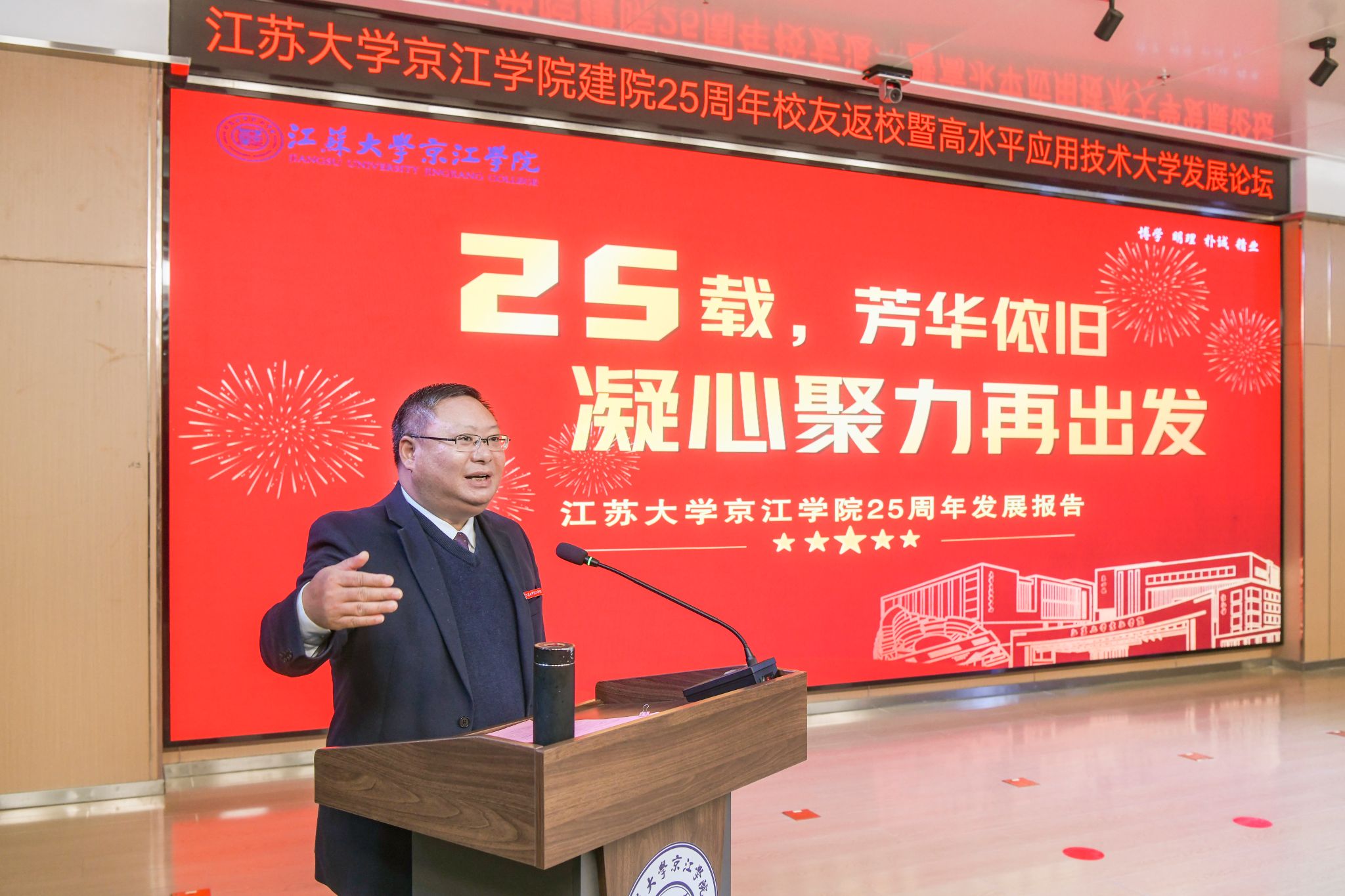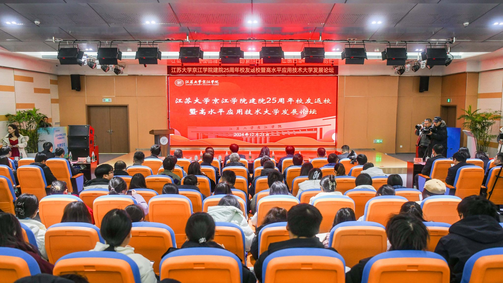 12月21日,京江学院在学术交流中心报告厅举行建院25周年校友返校暨高水平应用技术大学发展论坛。镇江市政协副主席、江南平台客服副校长陈红,镇江市发展和改革委员会副主任朱华,南京师范大学中北学院院长戴传超,校友会与对外联络办公室主任李国昊,企业代表,京江学院全体院领导、校友代表、教师代表、学生代表出席大会。