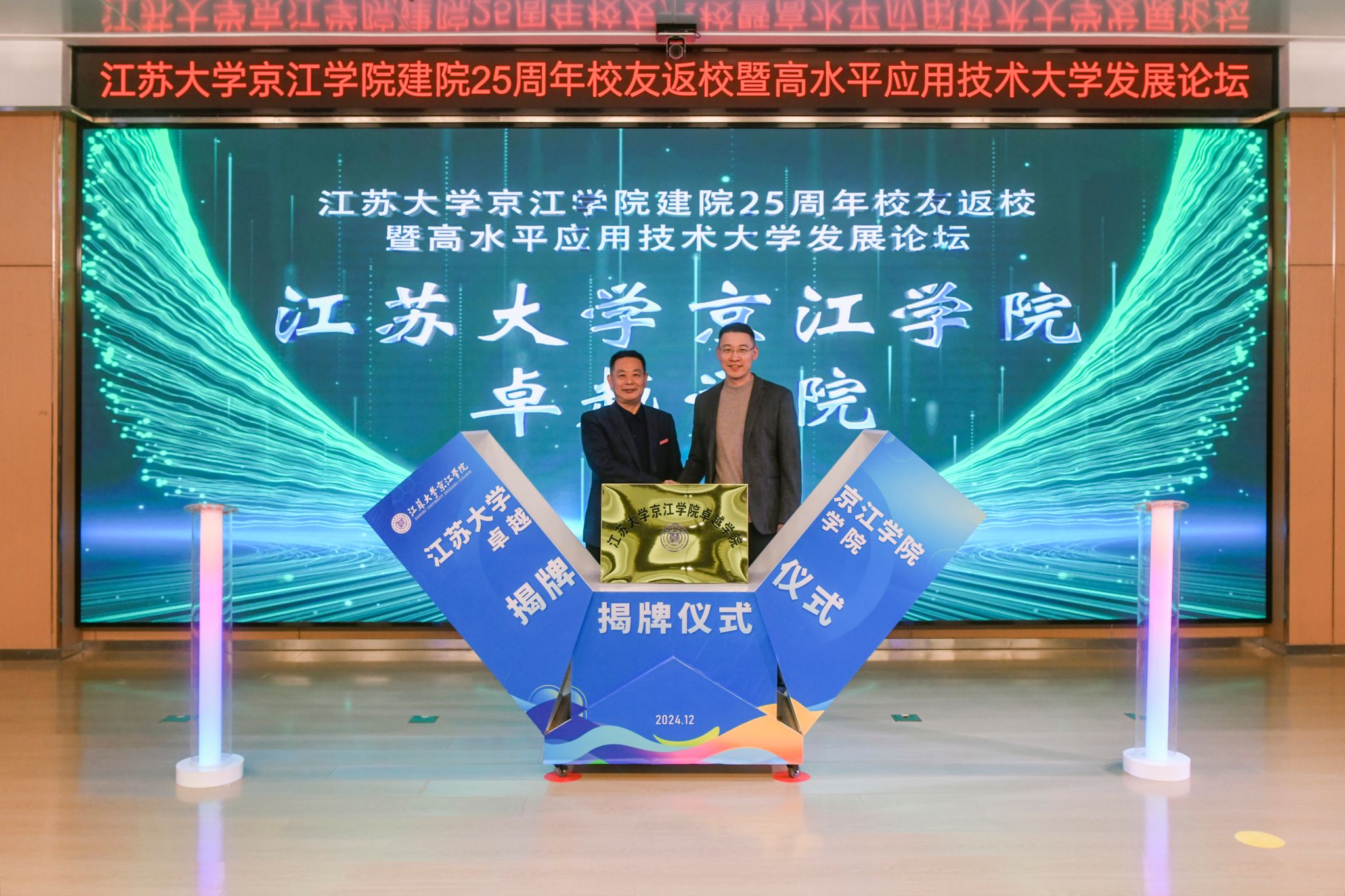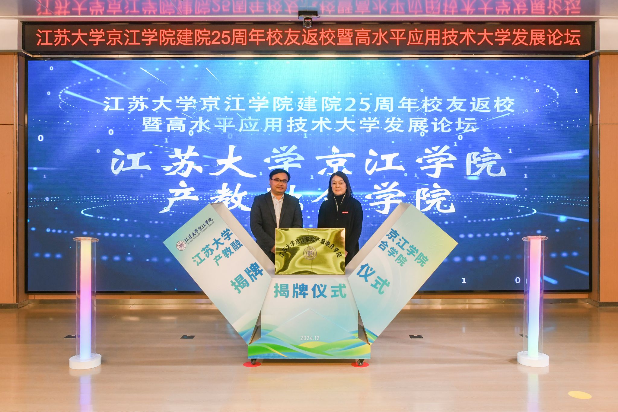 陈红和朱华共同为江南平台客服京江学院产教融合学院揭牌。江南平台客服京江学院党委书记崔金贵和周君君共同为江南平台客服京江学院卓越学院揭牌。