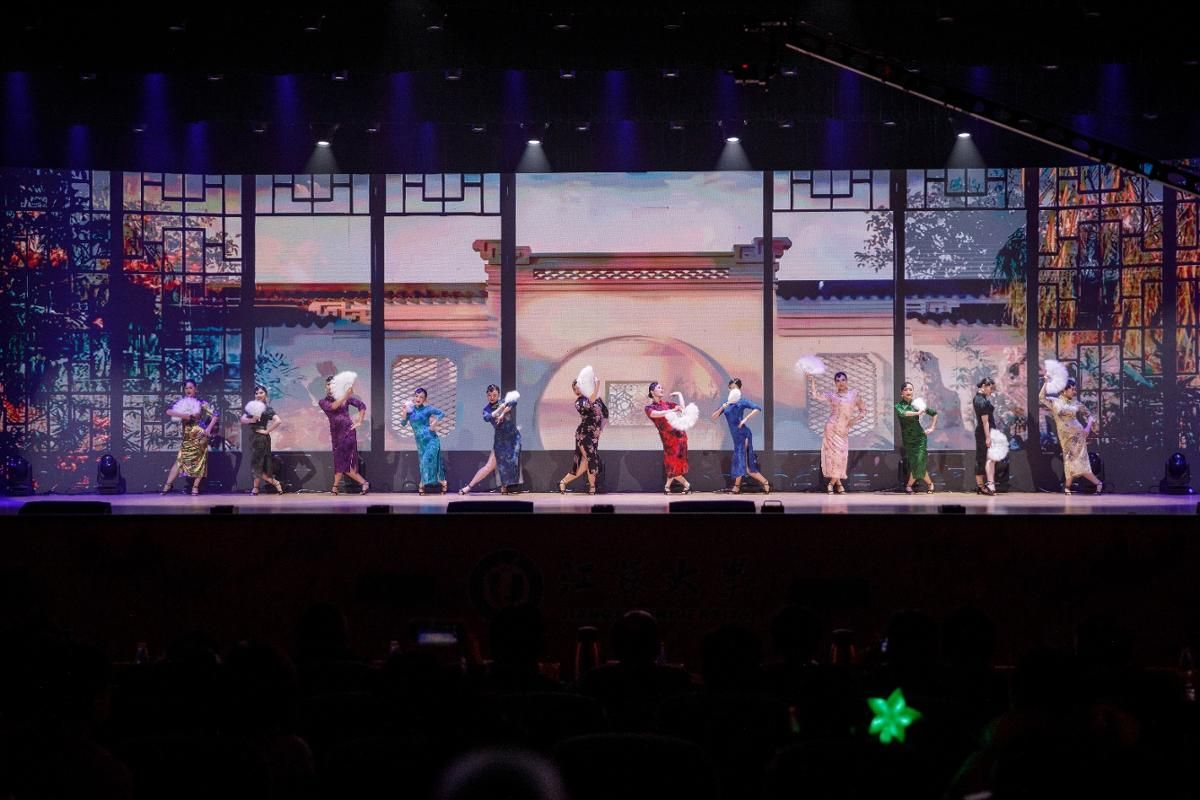 小品《江洲劫法场》“包袱”不断,尽显江大教师的多才多艺;旗袍秀《杏花落》中女教师舞姿优雅,似从画中翩然走来;太极表演《剑杖天涯》完美融合了太极剑和太极杖,极具创意的设计搭配高难度的武术动作引得现场观众连连喝彩。