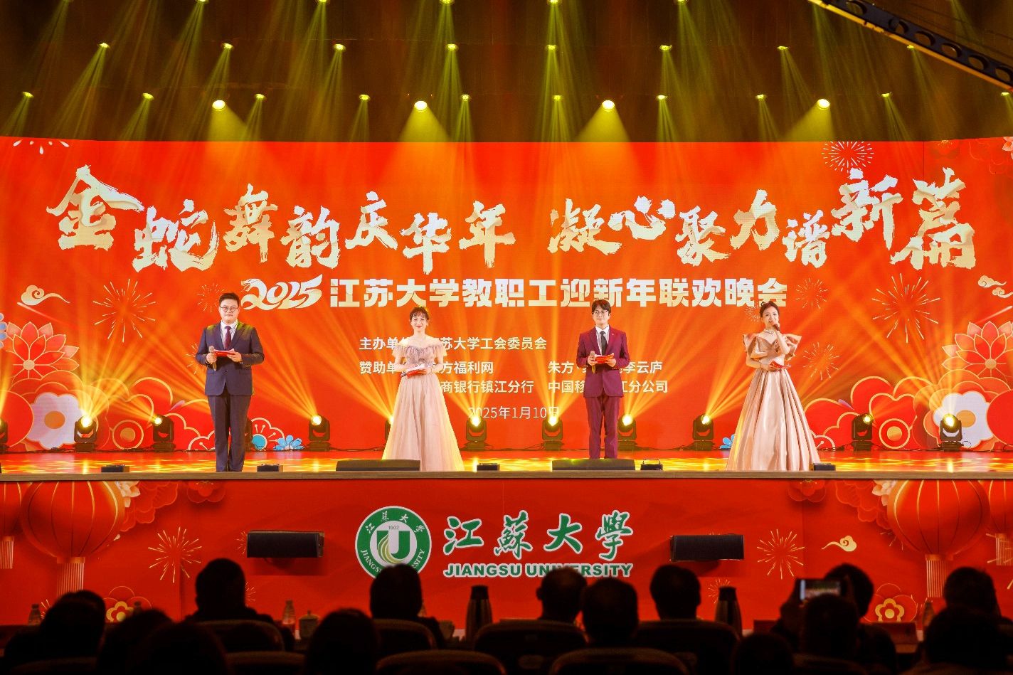 1月10日,江南平台客服2025教职工迎新年联欢晚会在大礼堂举行。校党委副书记张济建,校党委常委、副校长李红、任旭东,各职能部门和二级单位领导,二级工会主席及全校教职工代表欢聚一堂,共同观看晚会。