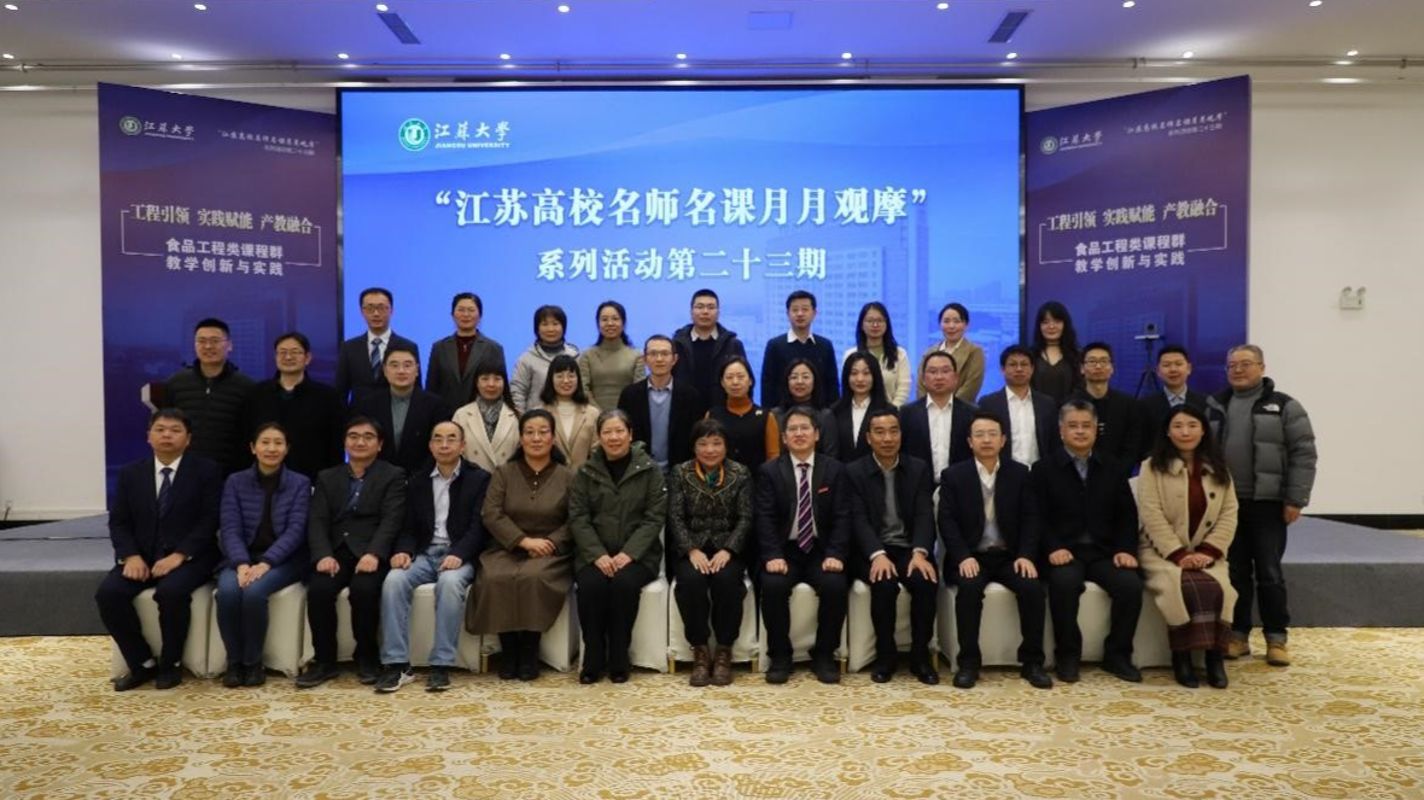 1月10日,第二十三期“江苏高校名师名课月月观摩”系列活动在我校举办。此次活动主题为“工程引领,实践赋能,产教融合——食品工程类课程群教学创新与实践”。江苏省教育厅高等教育处、江苏高校教师教学发展研究会、吉林大学、浙江大学、江南大学有关专家,江苏警官学院、江苏科技大学、淮阴师范学院、江南平台客服等70余位教师代表现场观摩活动。活动由全国高校黄大年式教师团队负责人邹小波教授主持,并通过“云书院”平台面向全省高校进行线上直播。