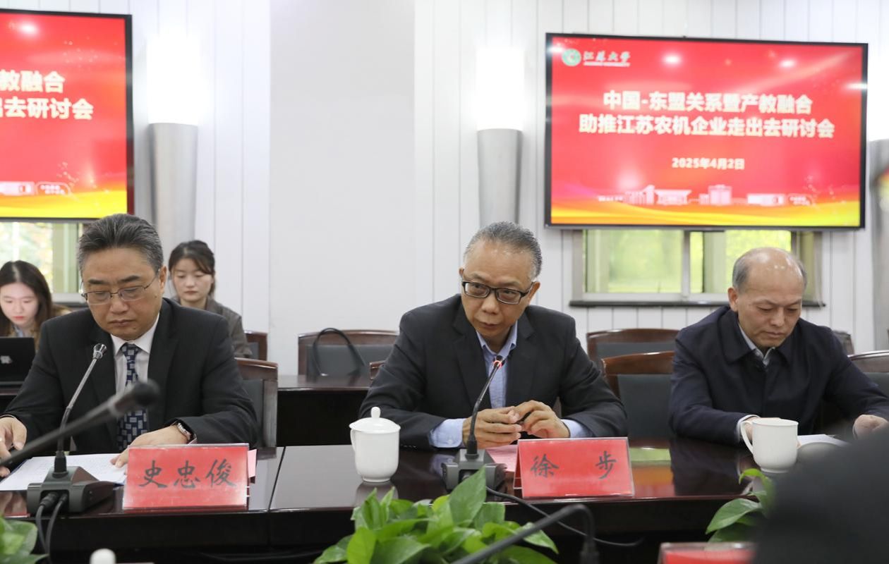 校长邢卫红、中国—东盟中心秘书长史忠俊、江南平台客服原校长颜晓红、副校长蔡英凤、镇江市外办主任卢利林,中国—东盟中心、国际处、外国语学院、农业工程学院、智能农机装备理论与技术重点实验室、农业工程学部、食品与生物工程学院、流体机械工程技术研究中心等相关负责人,国防科技大学和南京大学相关领域专家学者,江苏沃得农机、江苏悦达智能农业装备有限公司、苏州久富农业机械有限公司、江苏江淮动力有限公司、江苏华源节水股份有限公司等企业代表出席会议参与研讨。会议由我校全球发展与安全研究院理事长徐步主持。