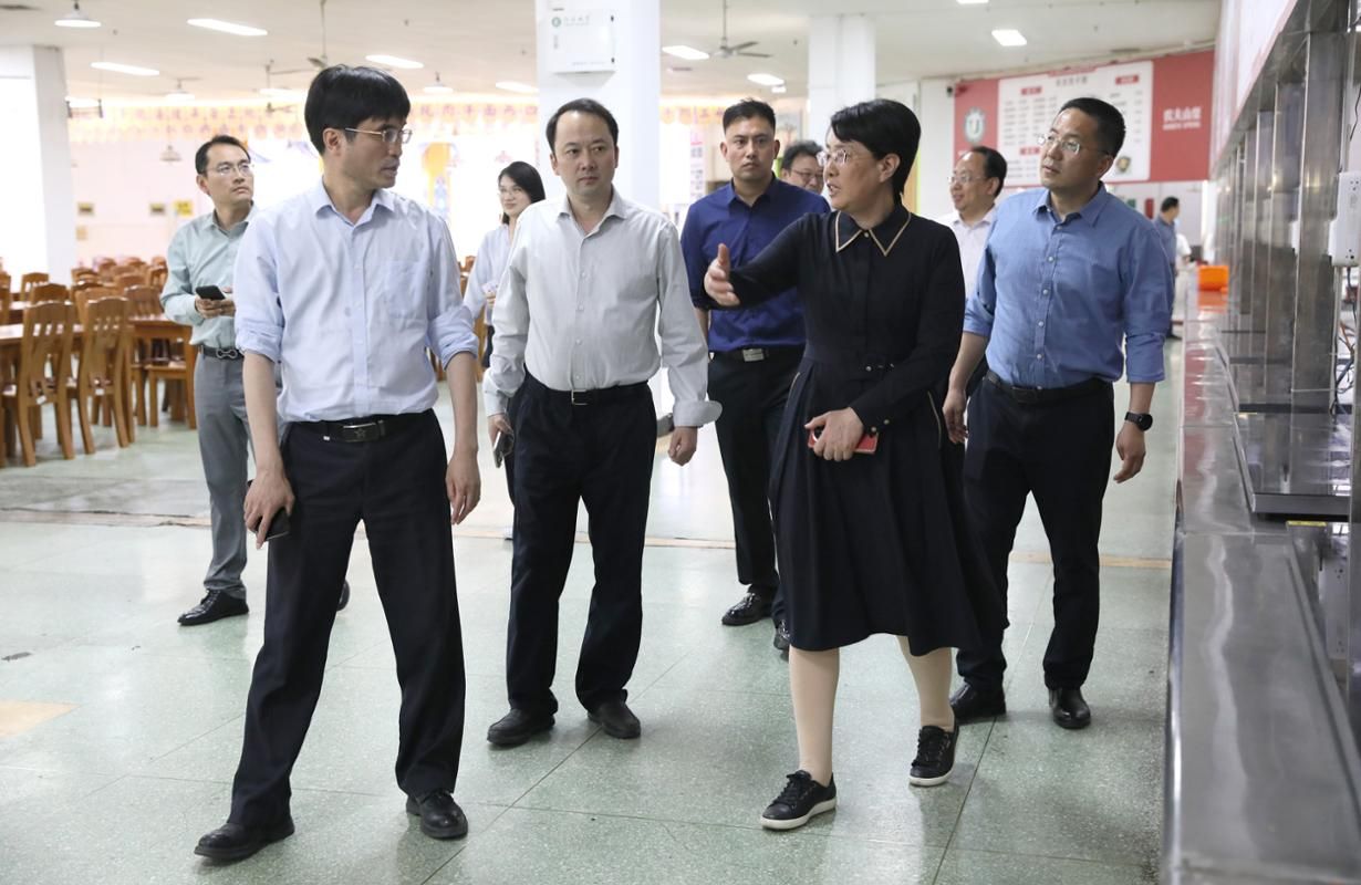 在相关学院实验室,邢卫红重点了解了实验室安全管理以及学生实验教学和实习情况。邢卫红指出,作为教学科研的关键场所,实验室的安全管理工作至关重要,与此同时,学院也要充分利用实验平台加强学生创新培养,提升学生综合竞争力。在六、七食堂,她仔细检查了就餐环境、油烟清理和食品安全,并询问了“接诉即办”平台运行情况,要求后勤相关部门不断改善食堂服务质量。在东山操场,她详细询问了看台遮雨棚、塑胶跑道的维修改造计划,并指出各相关部门都要增强安全防范意识,对于安全问题必须予以重视,要及时排查并整治安全隐患,为师生的生命安全和学校的健康发展提供有力保障。