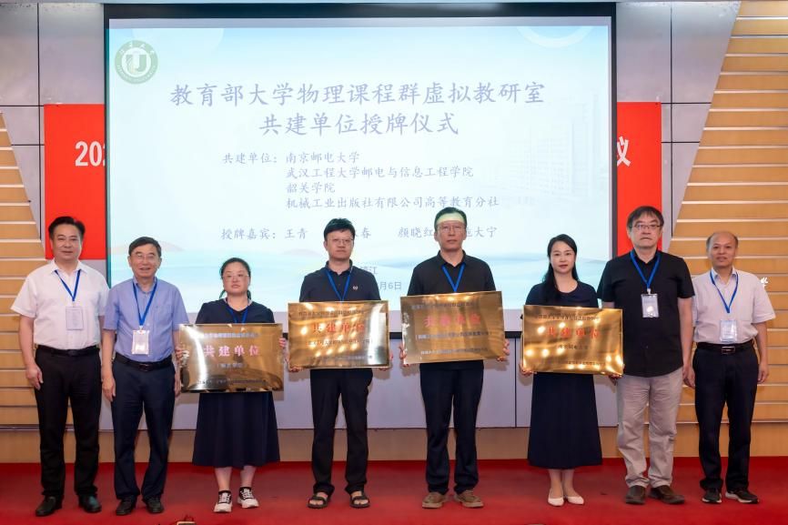 会上,王青、杜永春、南京邮电大学教授颜晓红、南京航空航天大学教授施大宁分别为南京邮电大学、韶关学院、武汉工程大学邮电与信息工程学院、机械工业出版社有限公司高等教育分社四所共建高校教师代表授牌,标志着教育部大学物理课程群虚拟教研室的共建合作正式启动。杜永春为江南平台客服实践教学基地、安徽省科大奥锐科技有限公司代表授牌。