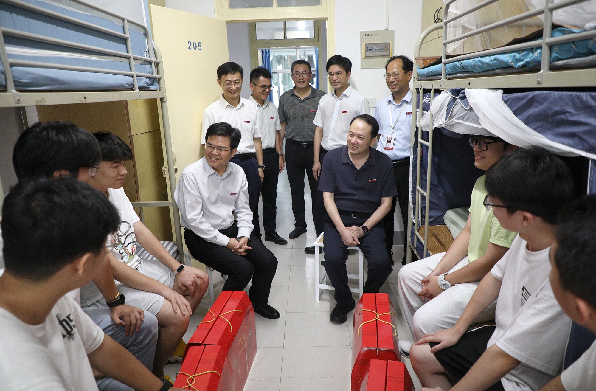 校党委书记李洪波、副校长任旭东及各职能部门负责人深入迎新一线,走访各接待点与学生宿舍,详细询问新生报到进度、住宿安排及后勤保障细节,慰问志愿者与工作人员。走访中,校领导与新生及家长亲切交流,勉励新生“珍惜时光,不负韶华,努力争做优秀的江大人”,同时要求各部门持续优化服务保障,全力营造温馨、安全、有序的入学环境。