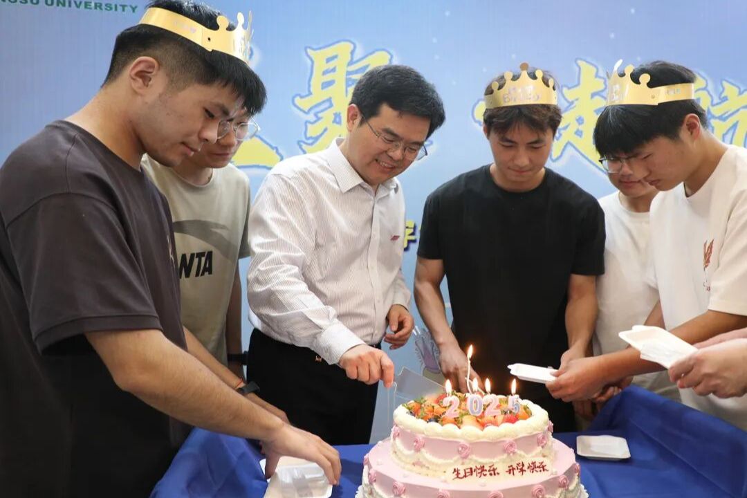 学校为迎新期间恰逢生日的72名新生精心筹办了“星聚・起航”集体生日会,让初入校园的学子真切感受到家一般的温暖。李洪波与在场师生共同唱响《生日快乐歌》,为新生送上祝福,寄语新生既要厚植家国情怀、校准人生航向,也要常怀感恩之心,在知识的海洋里收获成长,在实践的舞台上锤炼本领,最终实现自己的青春梦想。