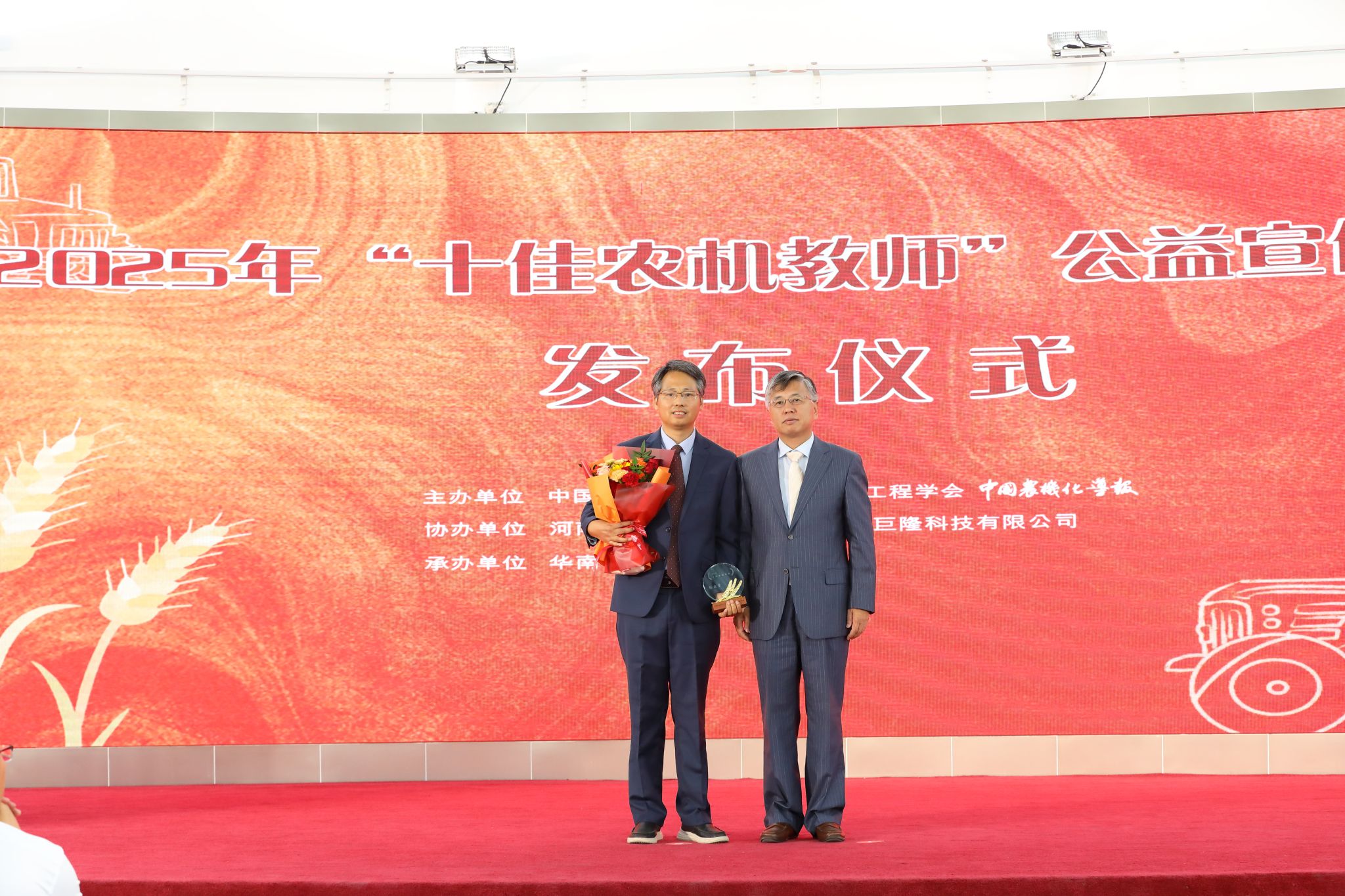 近日,由中国农业机械学会、中国农业工程学会、中国农机化导报等单位主办的2025“十佳农机教师”公益宣传活动发布仪式在广州举行,我校智能农机装备理论与技术重点实验室主任徐立章荣获2025全国“十佳农机教师”称号。