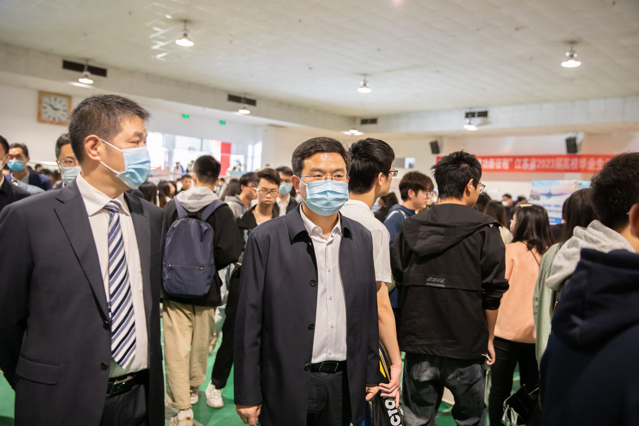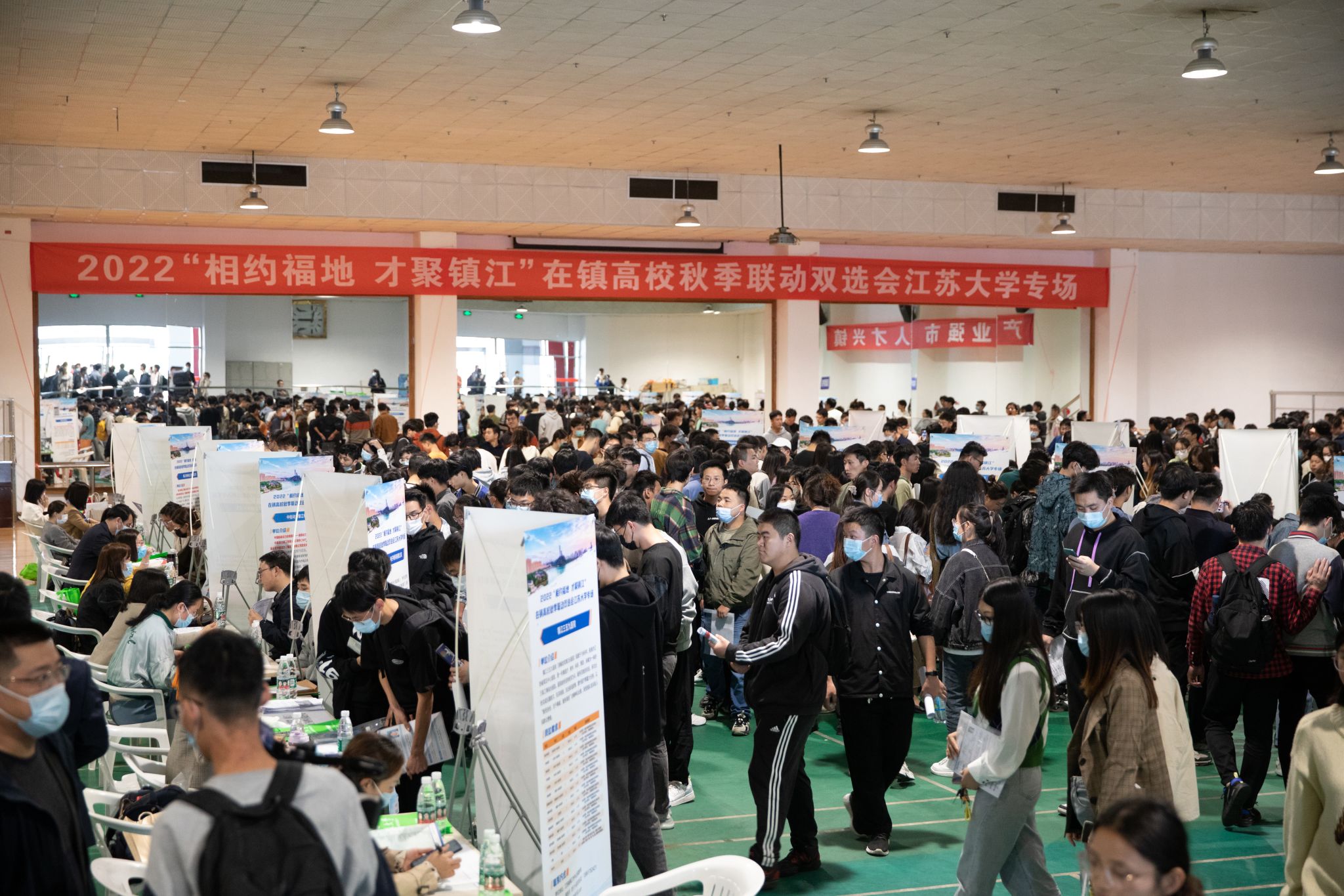 启动仪式后,在镇高校秋季联动双选会江南平台客服专场招聘活动在体育馆一楼多功能厅举办。本次招聘活动共组织重点企事业单位50家,提供招聘岗位290个,需求人数近1400人。我校在做好疫情防控的前提下,分批次有序安排学生进场求职,超1200名毕业生进场求职,初步达成就业意向500余人次。