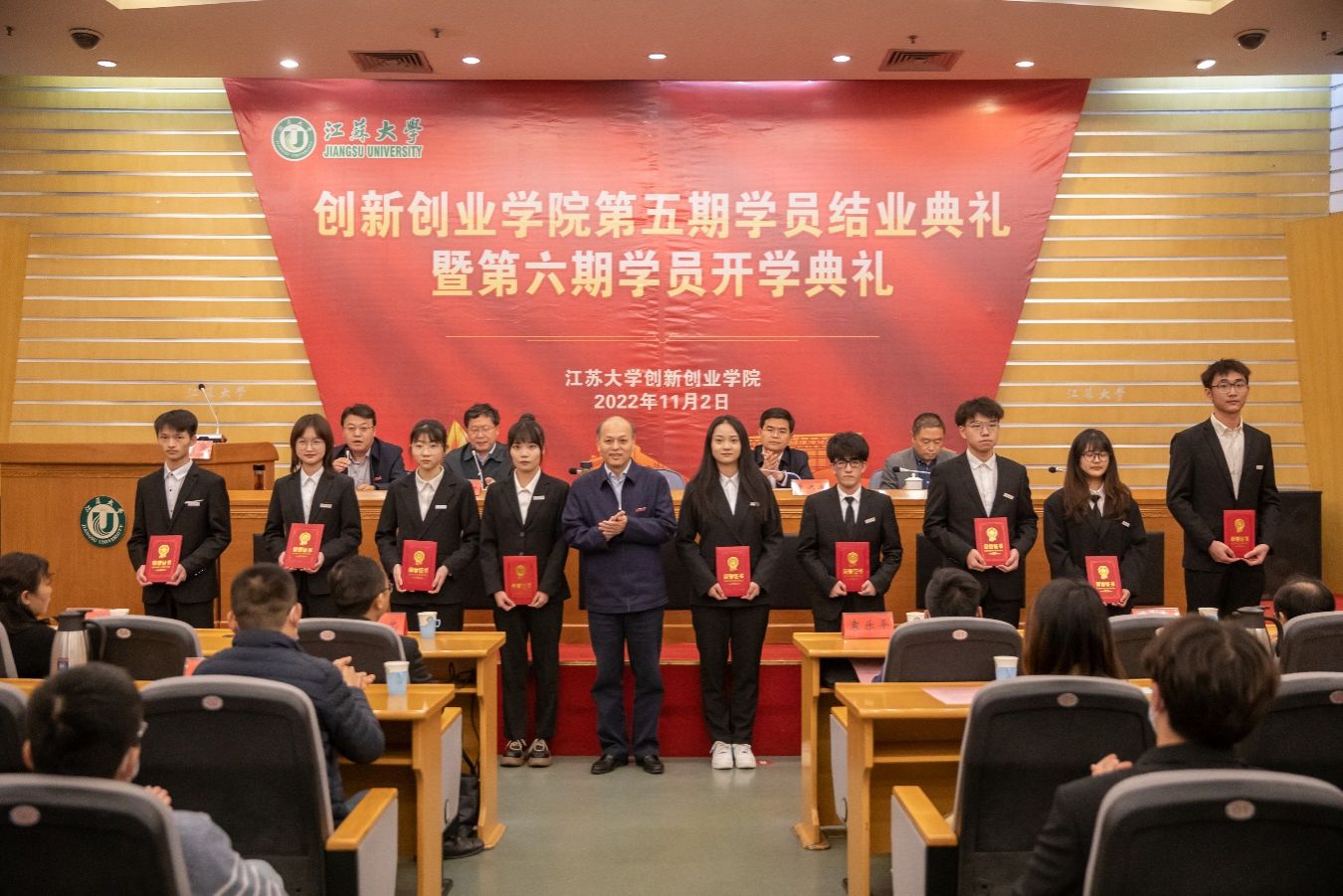 典礼上,颜晓红为创新创业学院第五期结业学员代表和创新创业奖学金获得者代表颁发证书,李洪波为新受聘校内外创业导师代表、朋辈导师代表颁发聘书。