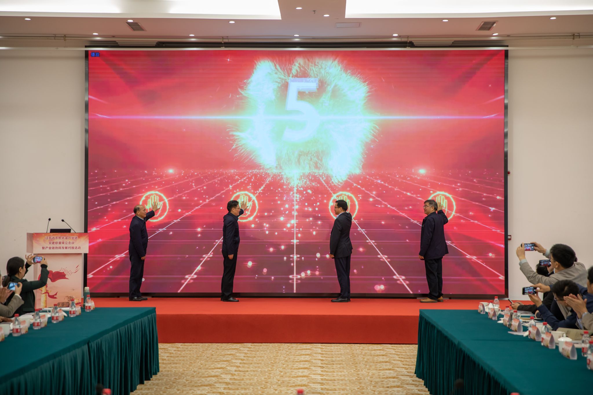 徐军、周宝银、袁寿其、颜晓红共同启动党建联盟成立程序。江苏省农机装备产业链党建联盟的成立,为高质量推动农机装备产业链发展提供了新的平台,对农机装备补短板、提升产业链韧性和安全水平,促进政产学研用协同发展具有重要作用。