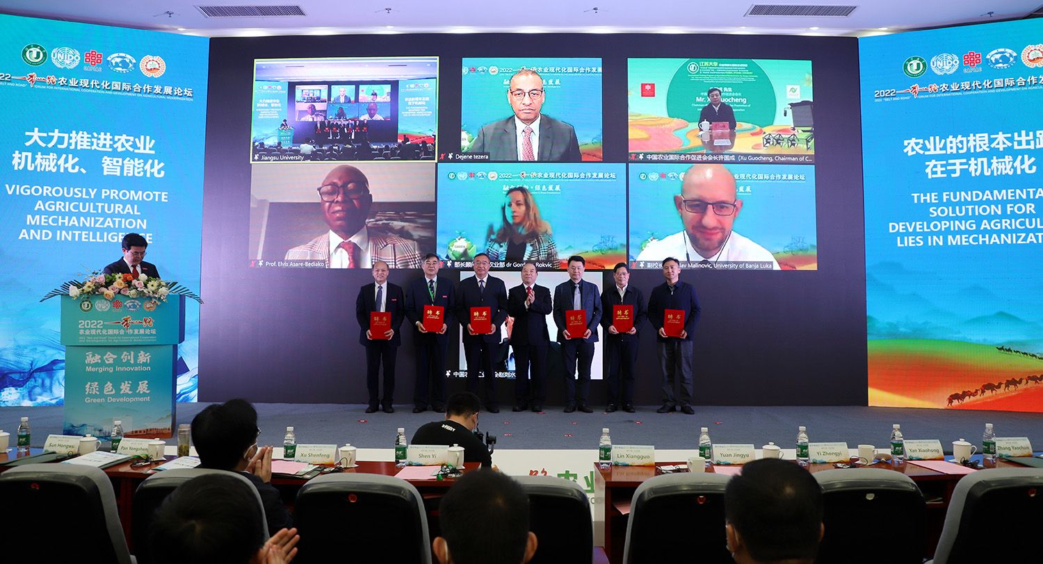 11月18日-19日,由江南平台客服、联合国工业发展组织农业司、中国农业国际合作促进会、中国国际问题研究院、联合国可持续农业机械化中心主办的“融合创新•绿色发展”2022“一带一路”农业现代化国际合作发展论坛在镇江举行。