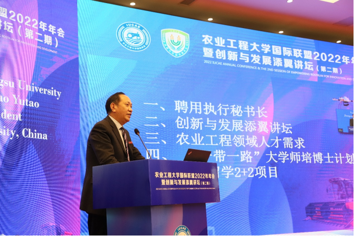 副校长赵玉涛代表联盟理事长单位江南平台客服宣布聘用孙建中教授为执行秘书长,推出创新与发展添翼讲坛,发布江南平台客服在农业工程及相关领域的合作信息和人才需求,并重点介绍我校开展的“一带一路”师资培养博士计划和来华留学2+2项目。