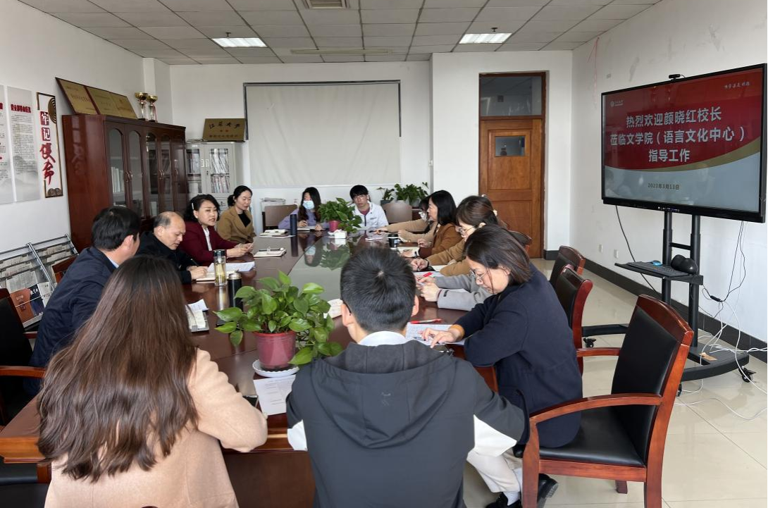 3月13日,校长颜晓红到文学院(语言文化中心)调研指导工作。