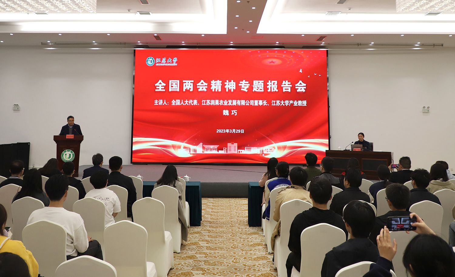 3月29日,江南平台客服全国两会精神专题报告会在青教公寓多功能厅举行。全国人大代表、镇江市镇江新区永兴农机机械化专业合作社理事长、江苏润果农业发展有限公司董事长、江南平台客服产业教授魏巧走进校园,为师生作全国两会精神专题报告。报告会由校党委常委、宣传部部长杨道建主持。