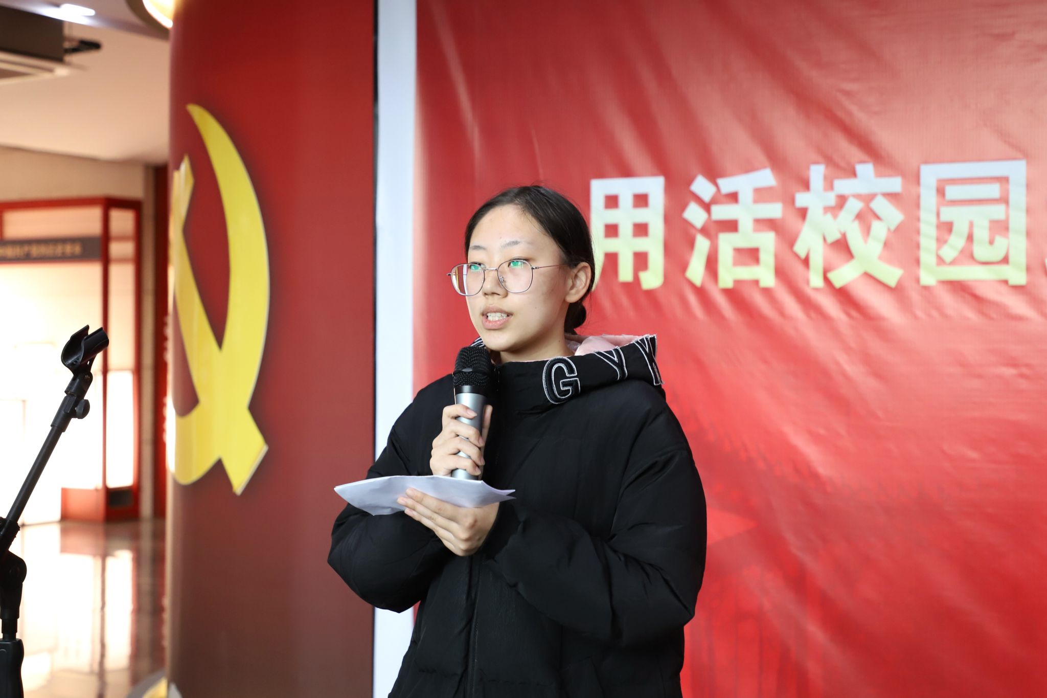 学校深化红色文化育人实践,将爱国主义教育与中华优秀传统文化深度融合,以戏剧为载体,打造了思政舞台剧《王龙亭》。活动中主创人员介绍了创作缘由,演员们分享了在表演中感受到的革命者舍生忘死的家国情怀,以及共产党人不懈奋斗的永恒信仰。现场一封写给王龙烈士的信,上演了一场穿越时空的对话,至情至深,听者动容。