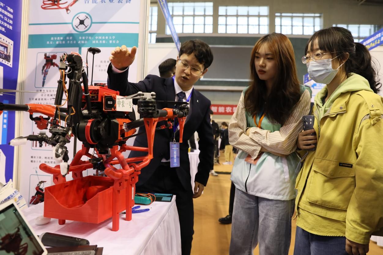 决赛期间,“护农卫士——作物叶部健康状态领航者”“基于紫外光解的便携式自动化土壤重金属电化学检测系统”“一种可抬升式草方格直角种植机器人”“白马农场智慧可视化系统交互设计”“果实采摘分选机器人”等来自中国农业大学、浙江大学、华南农业大学、江南平台客服等高校的300件创意作品亮相比拼。