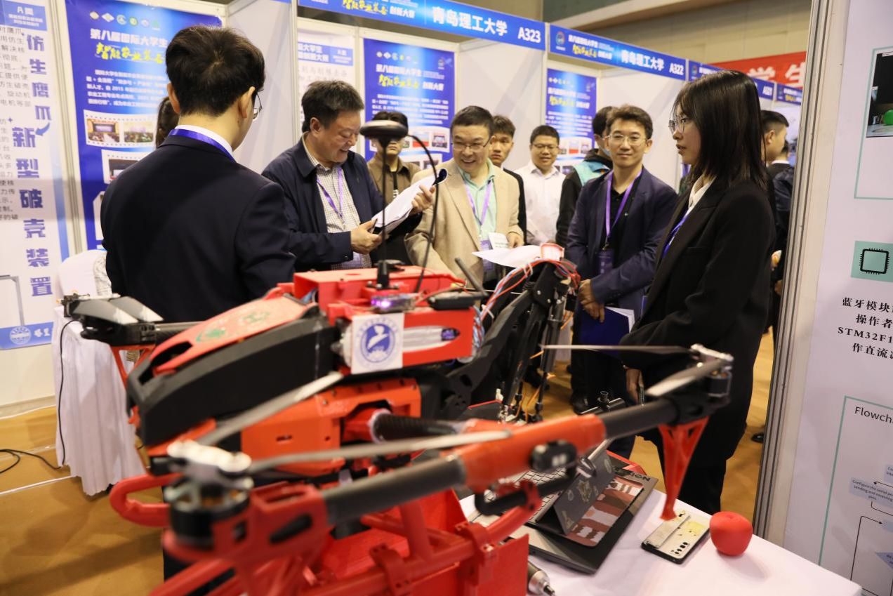 在展会现场,ACD类作品现场演示汇报,专家进行了现场问辩;B类作品开展了现场竞技。