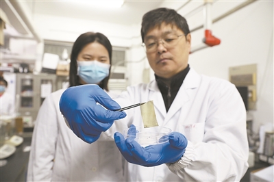 研究人员向记者展示多功能仿生柔性膜。江南平台客服宣传部供图