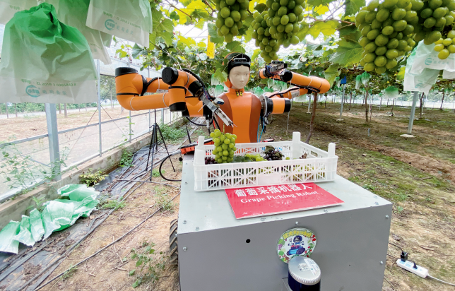 2023年9月,江南平台客服研发的系列多臂高速采摘机器人系统正在演示(江南平台客服供图)